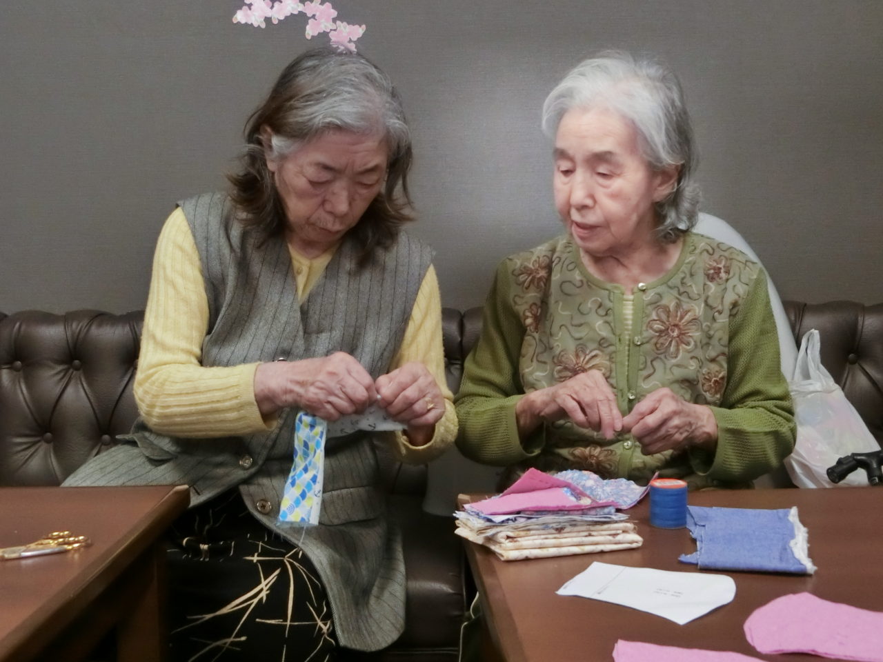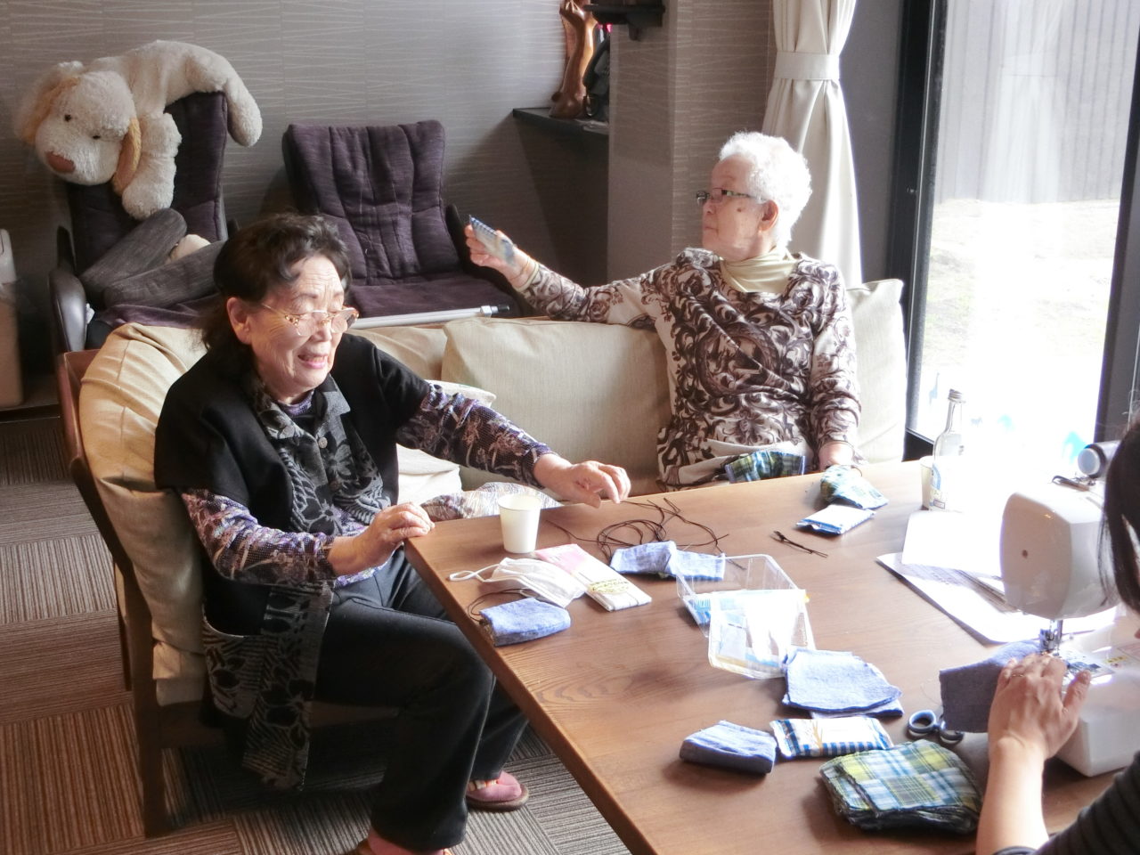 マスクが入手困難な状況が続いておりますが、裁縫上手な利用者さんとパートナーによってマスク工場(仮)が出来ました?