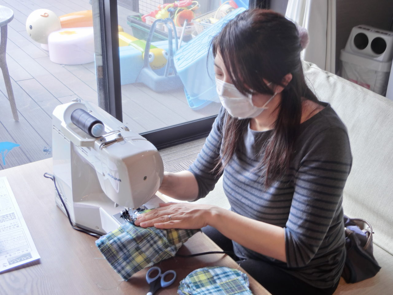 丁寧に手とり教えてくださり、皆さんとお話をしながら行うマスク作りは