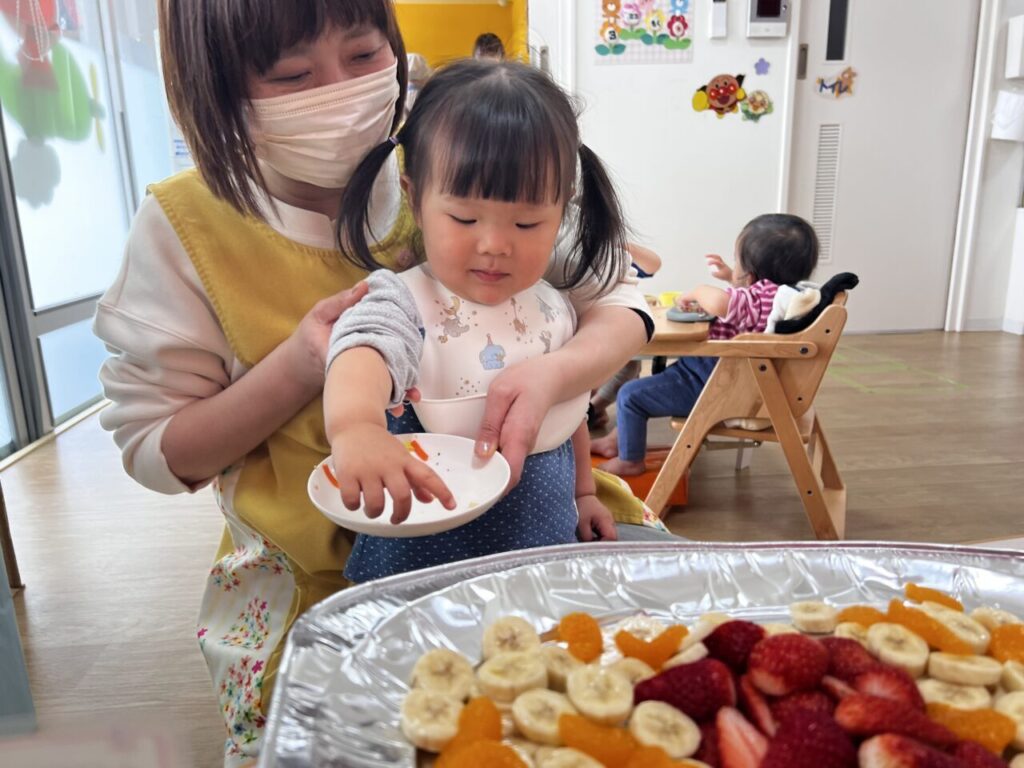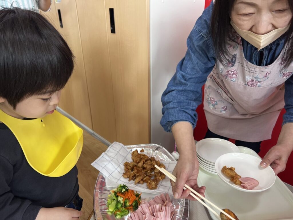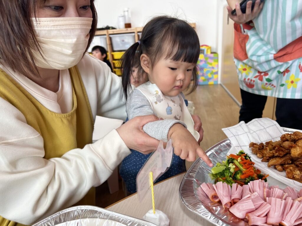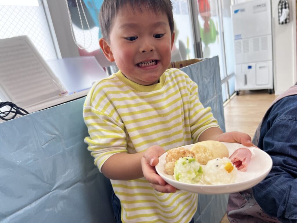 どれにしようかな〜、これ2つにしようかな〜など迷ったり、お友だちが選んだものを見て『○○もこれにする‼︎』と選ぶお友だちもいて、お皿はいっぱいに?❤️♬