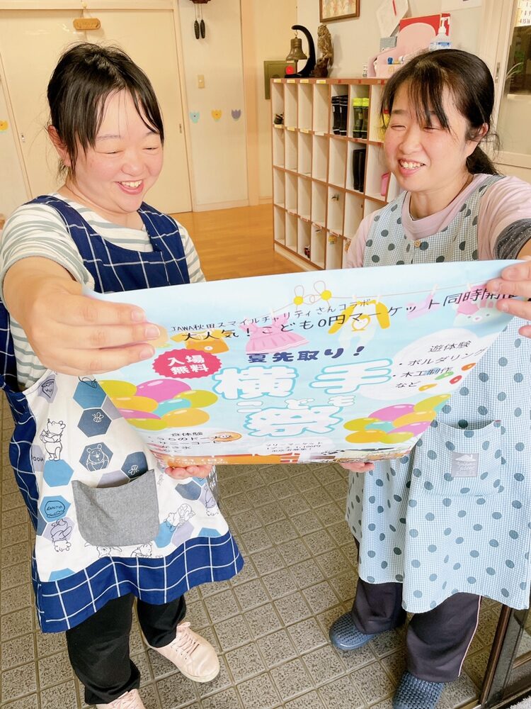 こちらの「こども0円マーケットinよこて」のポスターは、広報企画部の江さんが作成してくれました!