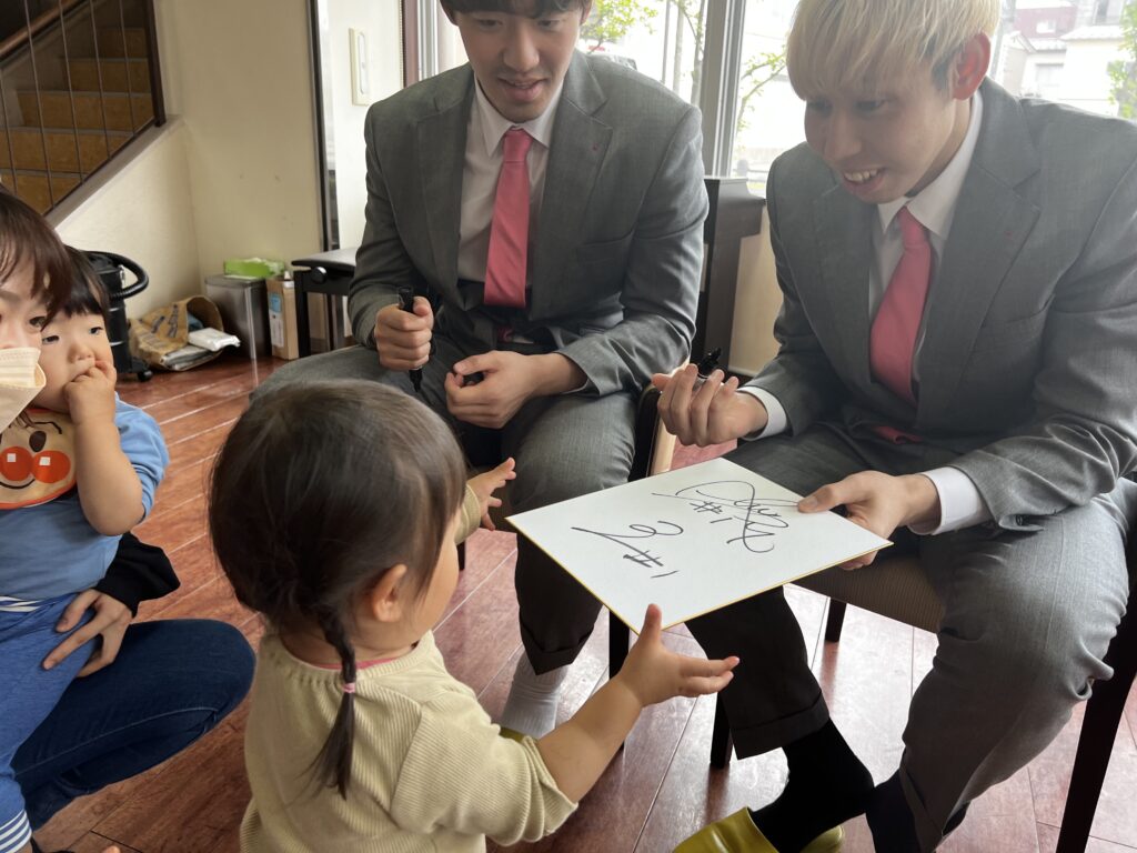 3、4歳児のお友だちは『サイン下さい♡』と選手にお話してサインをもらいました★