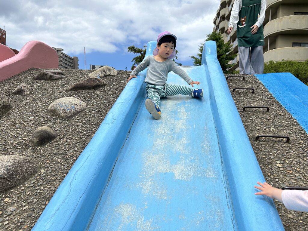 そして、避難訓練を頑張った子ども達はひさしぶりのたまご公園で思いっきり遊んできました?
