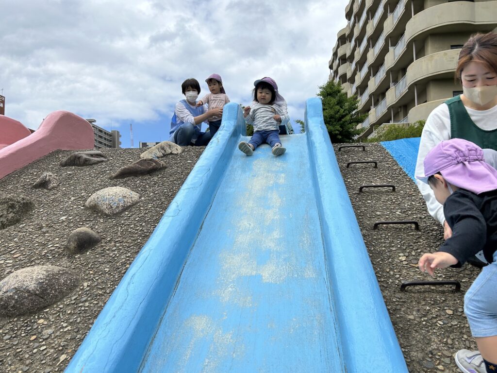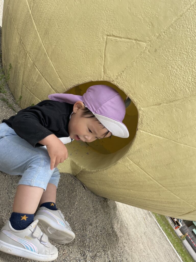 滑り台を楽しんだりたまごの遊具の中を探検してみたりとたくさん遊んで楽しかったね?✨