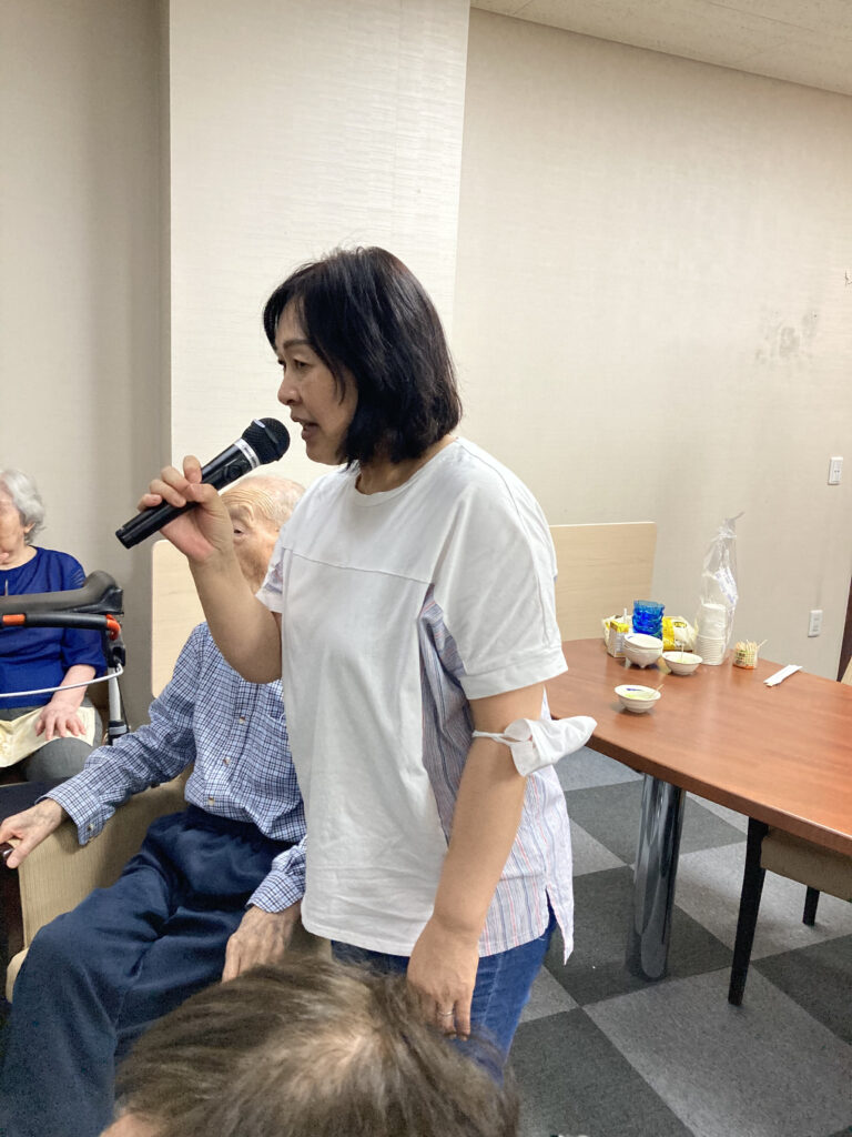 ちょうど面会に行ったらカラオケで皆さん盛り上がってまいりました。皆さんとてもいい笑顔で楽しそうで、この暑さも吹き飛ぶような様子で安心しています。素晴らしい企画