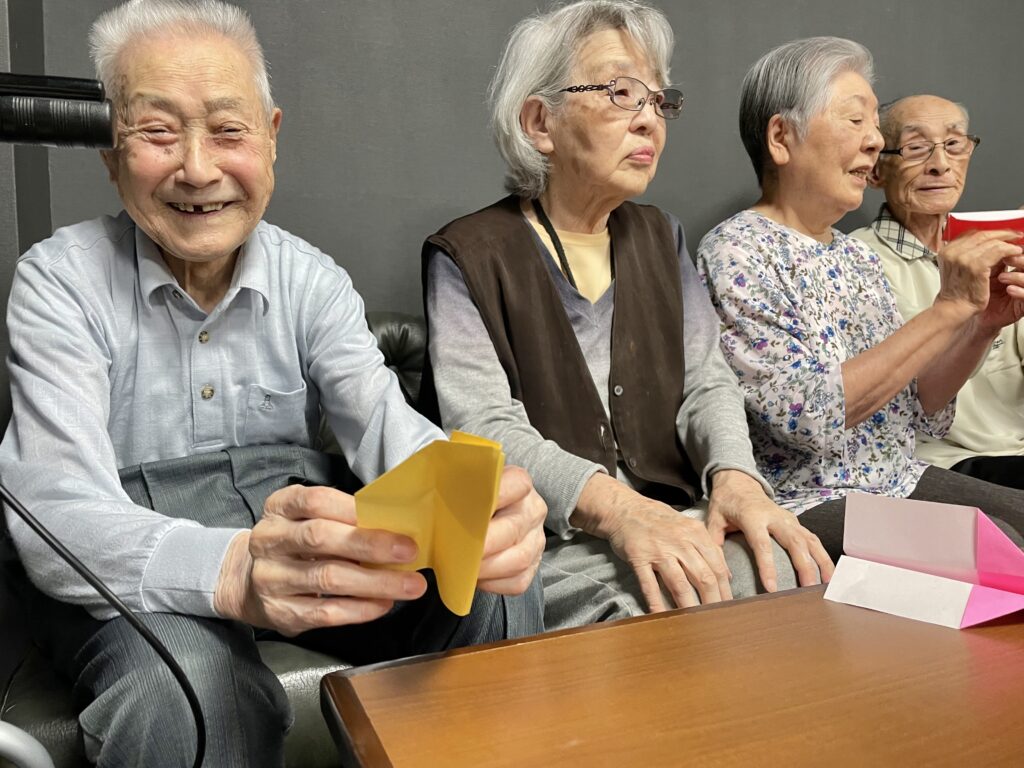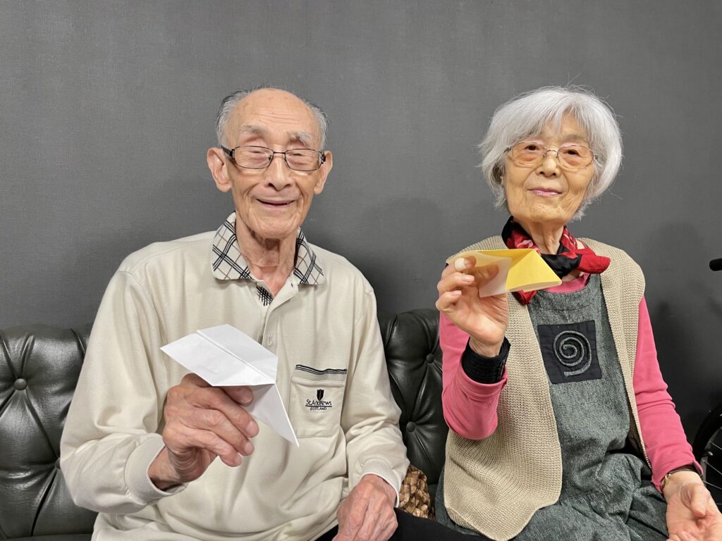「小さい頃良く作ったのよ」「紙飛行機作りは得意だよ」などなど皆さん懐かしがりながらも、気合いを入れて折っていきます??