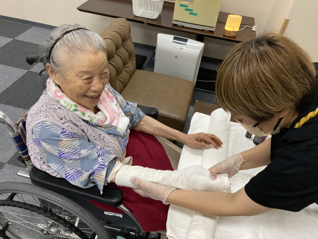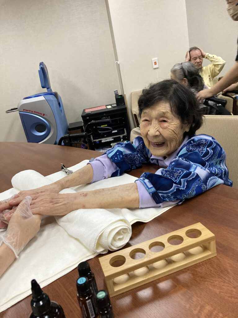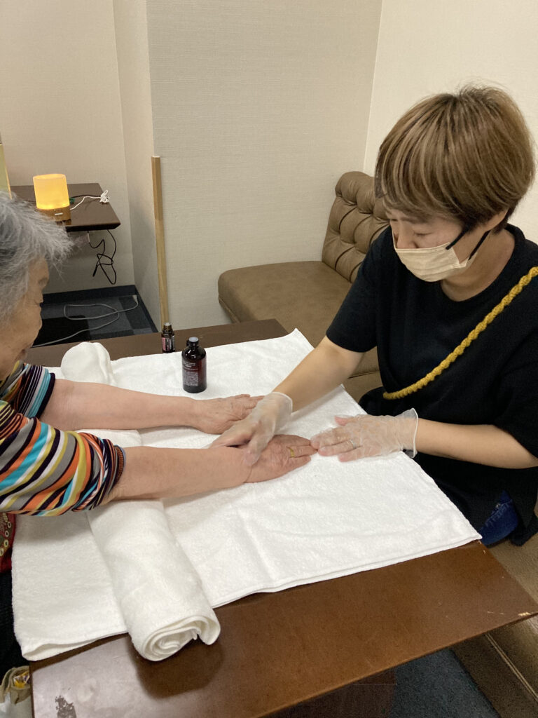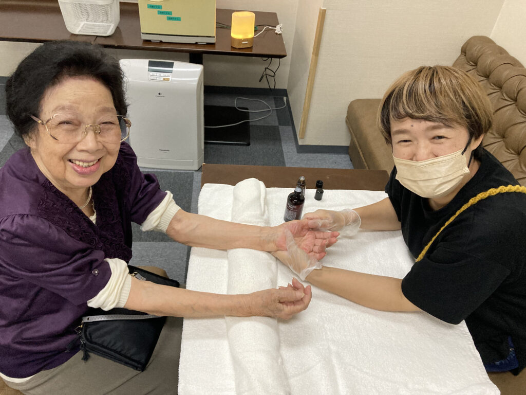 「とってもいい香り」とマッサージした手から香るアロマオイルを楽しむ利用者さんのお姿が印象的でした!