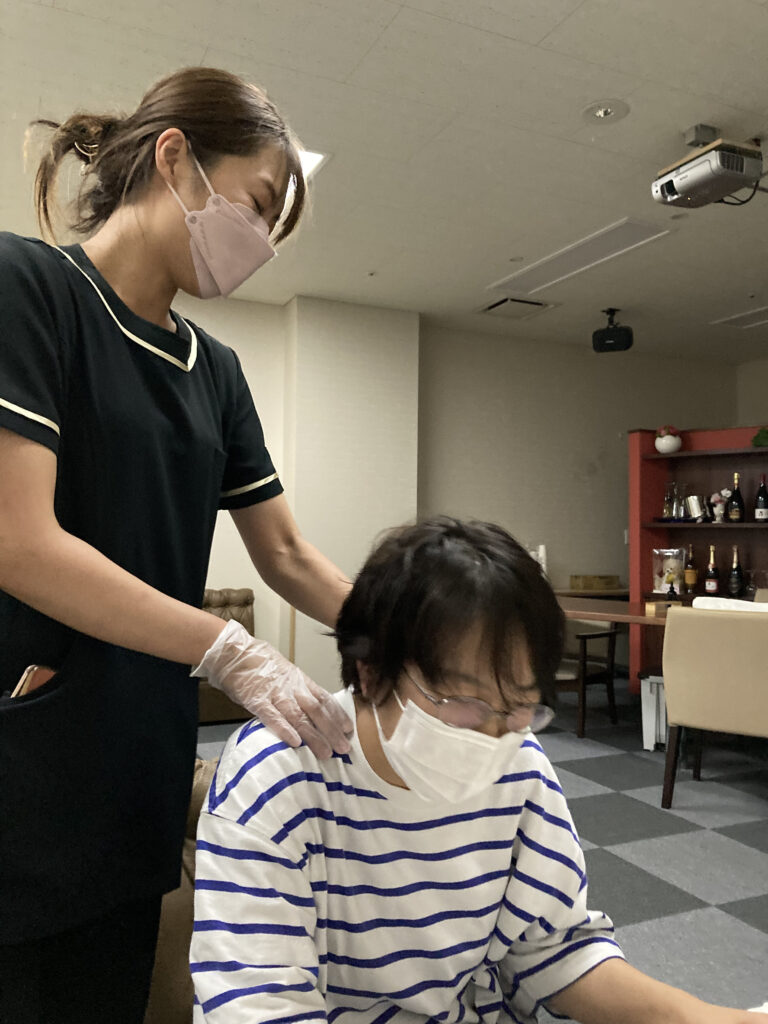 職員へも癒しを…ということでプロの技を施術して頂くことに?