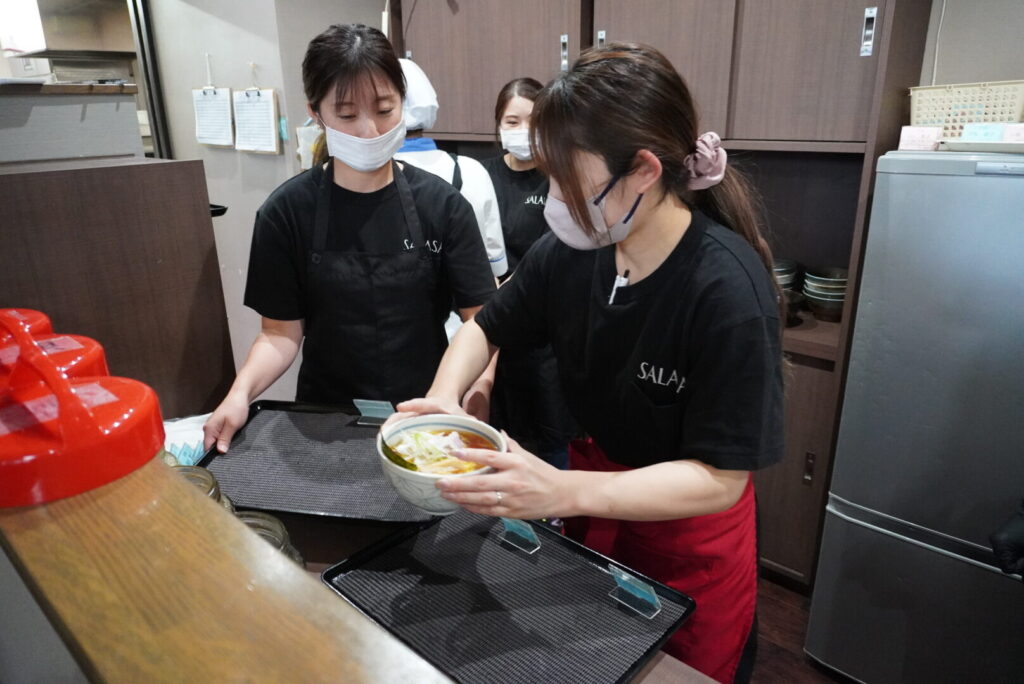 当日、昼食前にレストランへ向かうと、職員の皆さんがラーメン屋スタイルに大変身していました?