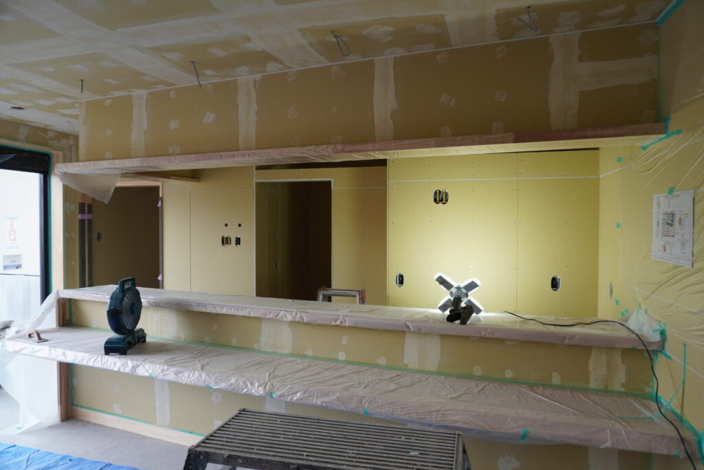 9月下旬には、内装にカウンターを造るための作業が行われておりましたが、