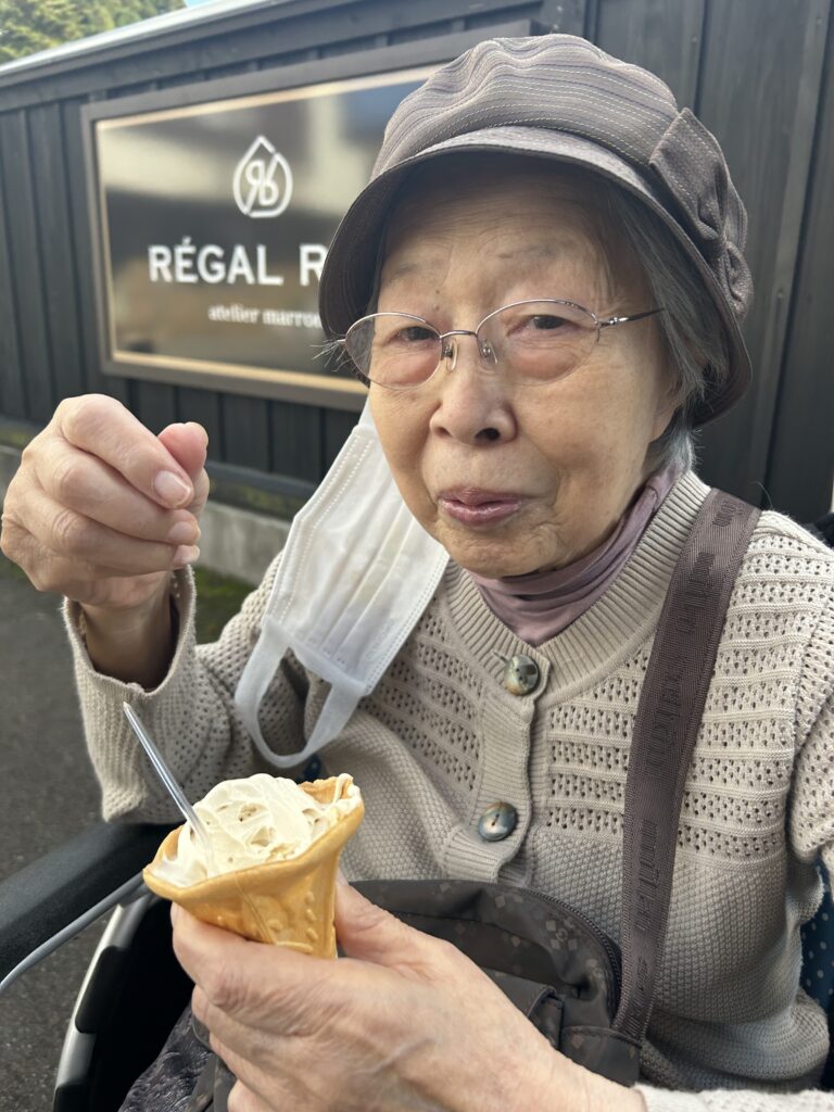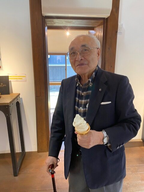 栗の味わいがする濃厚ソフトクリームをみんなで「初めて食べる味だ!うまい‼」と共感しながら食べ、