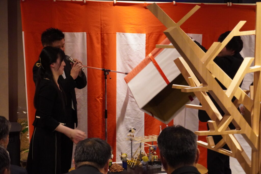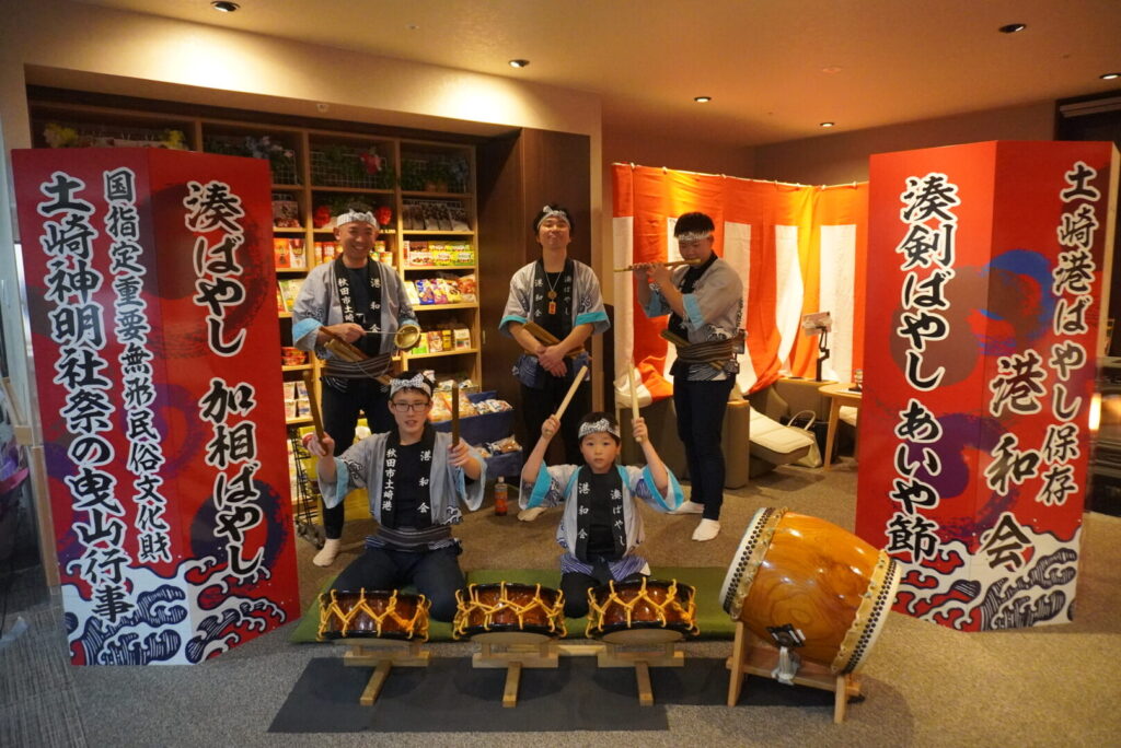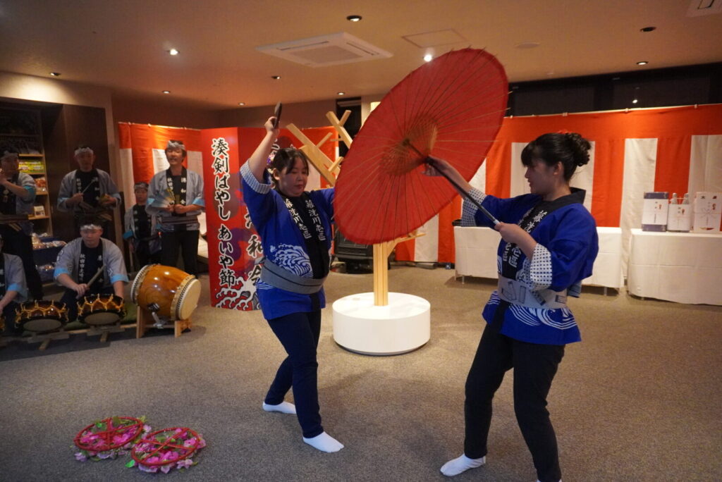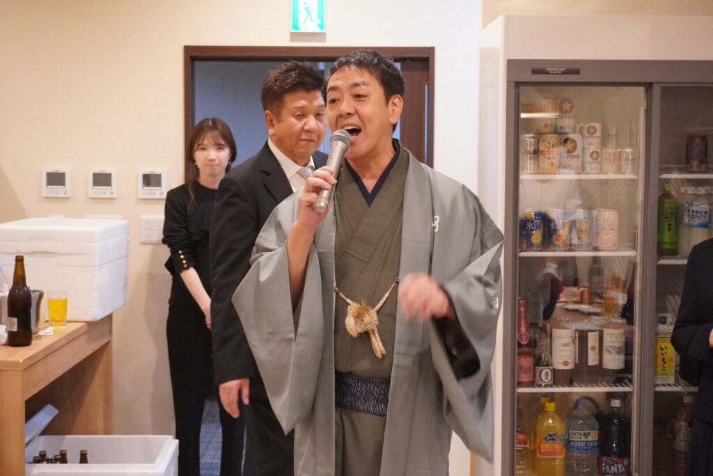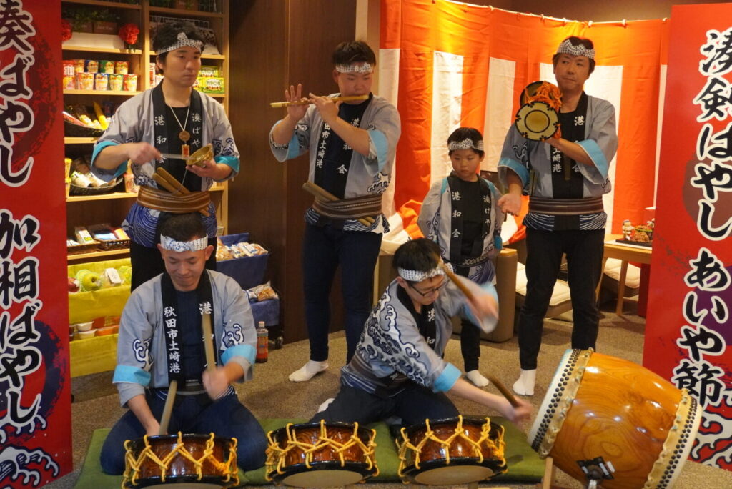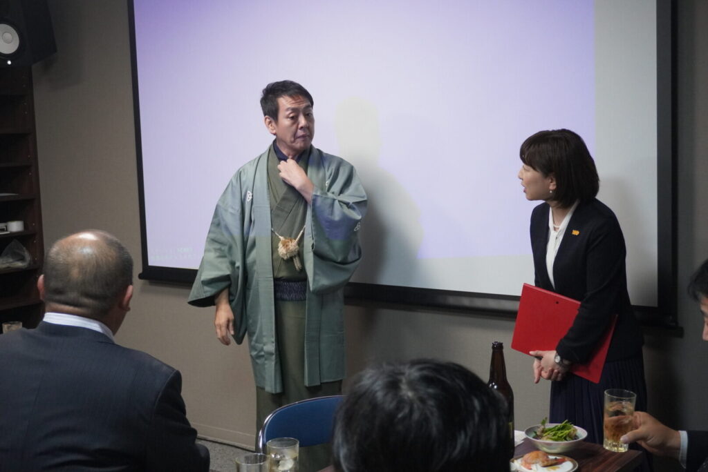 懇親会が進む中、サプライズイベントで落語家の桂三若さんによるさらさ秋田土崎にちなんだ落語や土崎港ばやし保存 港和会の皆さんにもお越しいただき、いくつかのお囃子と演芸を披露していたただきました♪