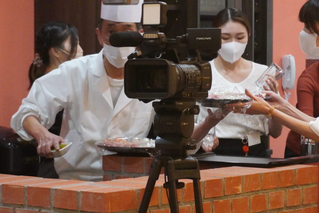会場をレストランとカラオケ・シアタールームに分け、カメラをセッティングしシアター風に!?