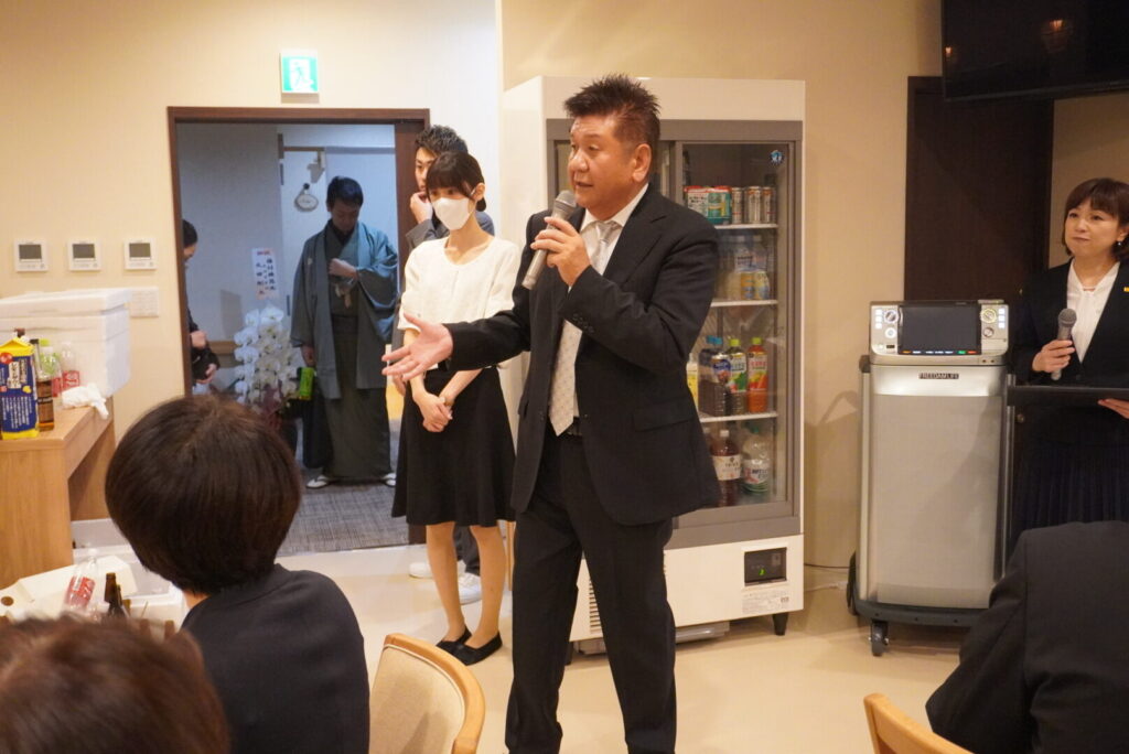 最後に、社長の南川から終わりの挨拶を申し上げた後は、北都銀行 常務執行役員 嵯峨修様のご挨拶と三本締めにて終了しました。