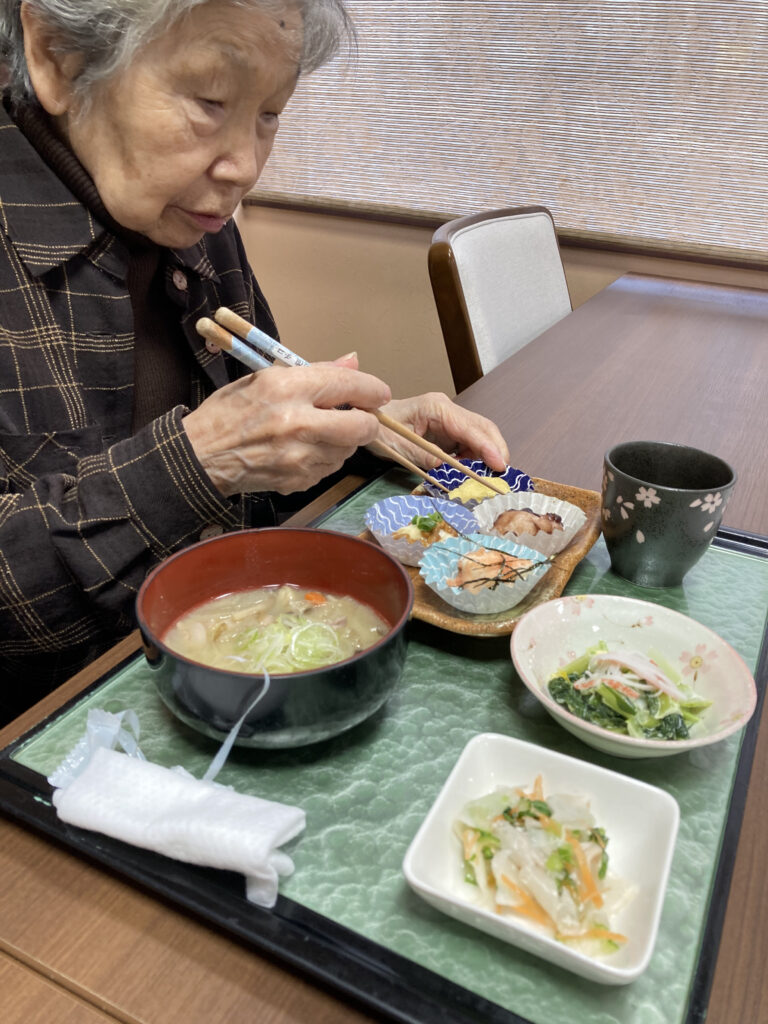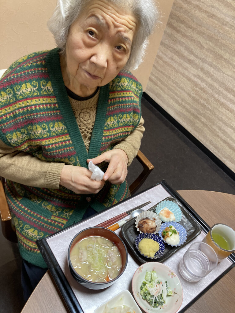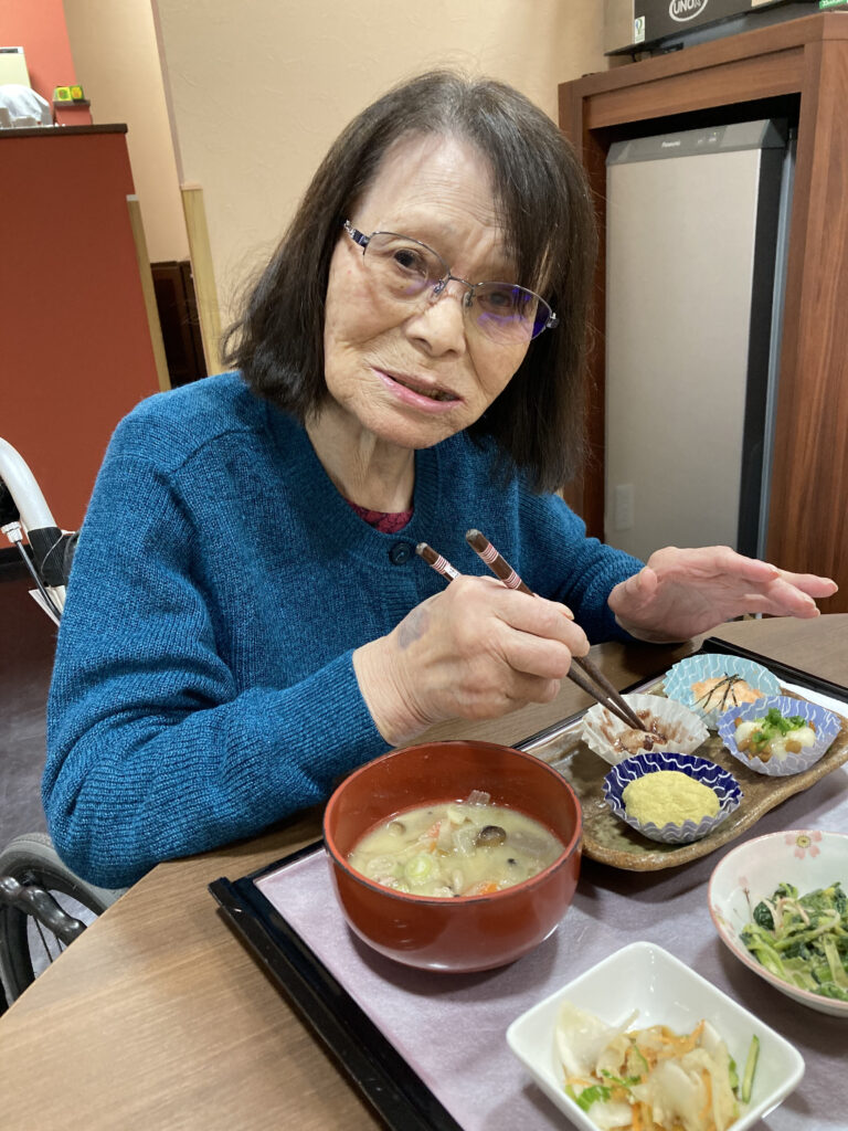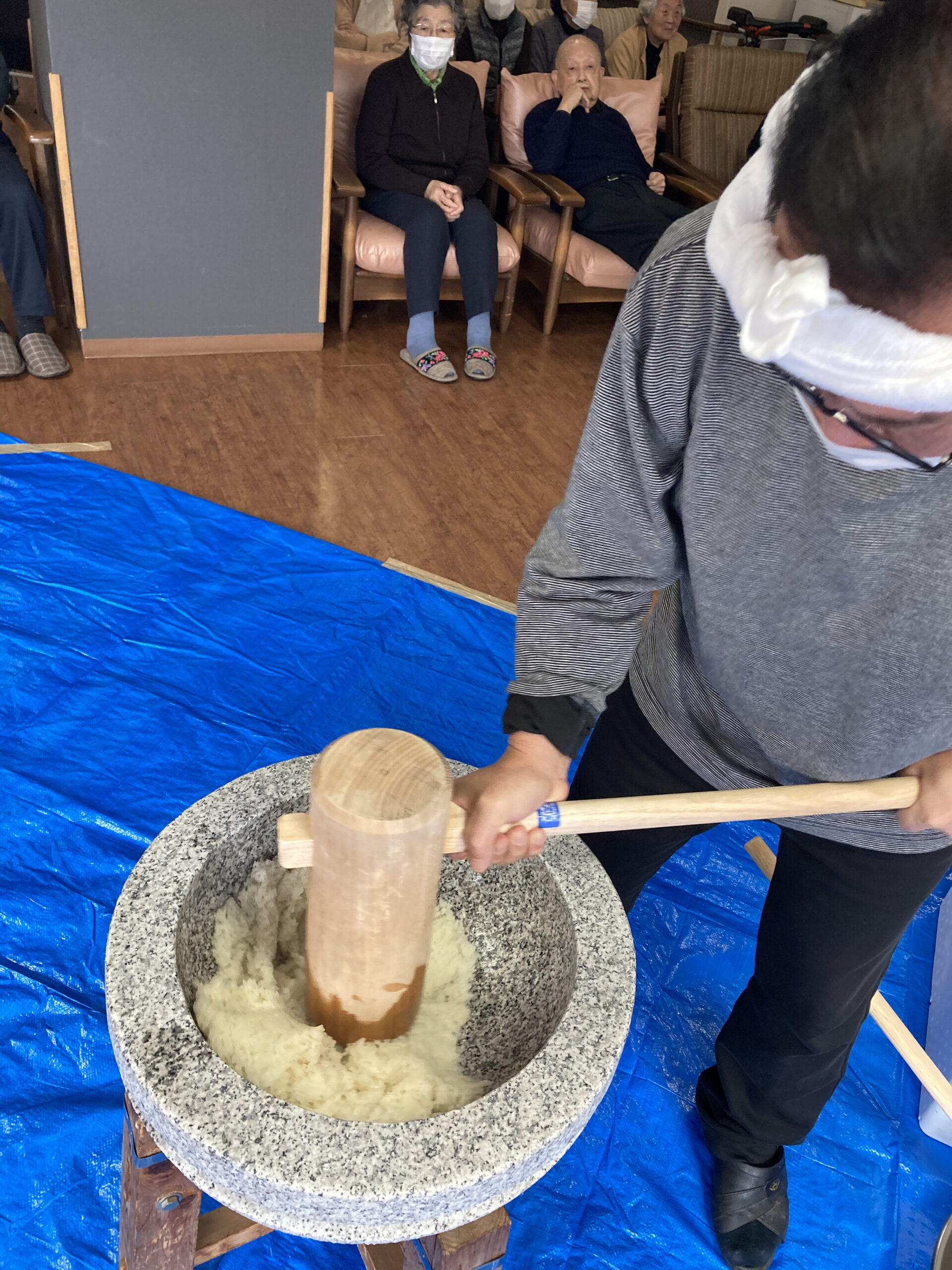 鏡餅も綺麗に完成!!働いた後はお腹が空きます!!つきたてのお餅を昼食で召し上がっていただきました!!