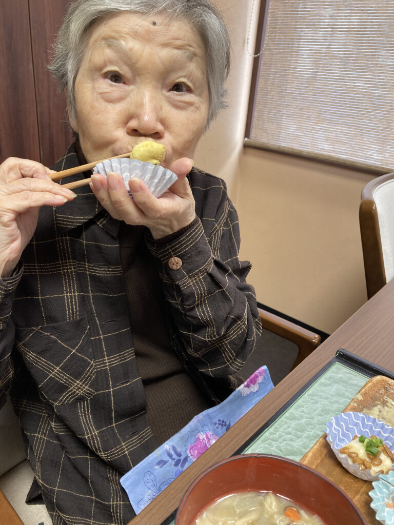 皆さん、お餅ぺろり〜〜〜?明太バター餅も大好評!!