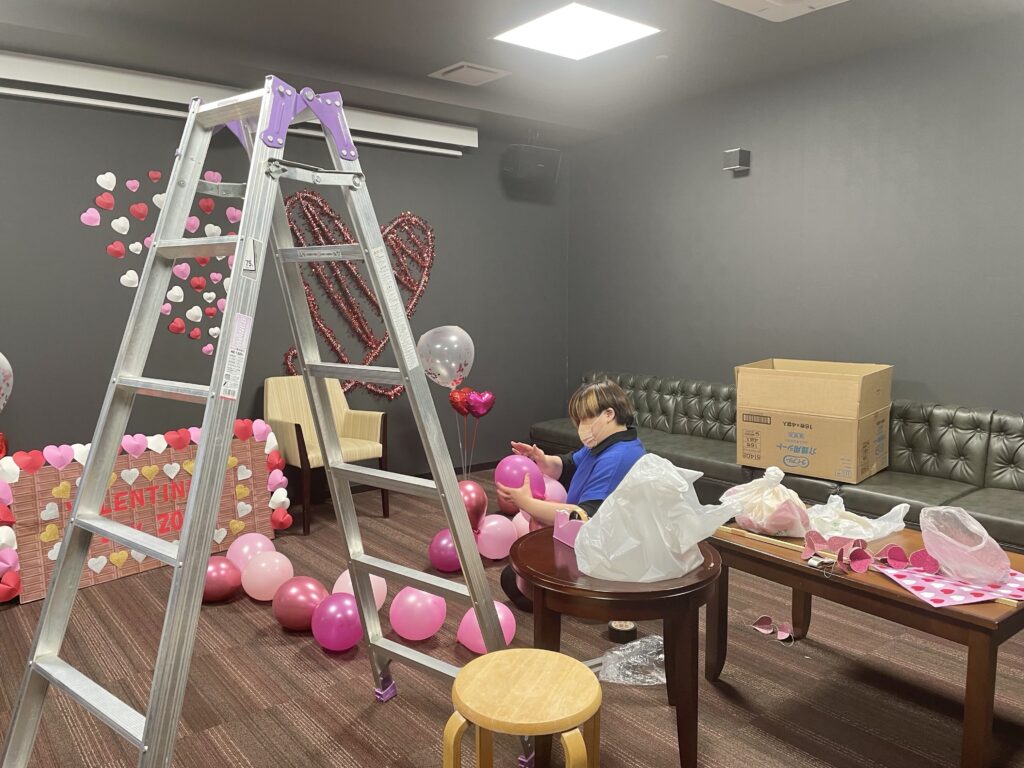 バレンタインの可愛いフォトスポットを作成中なのです?!!