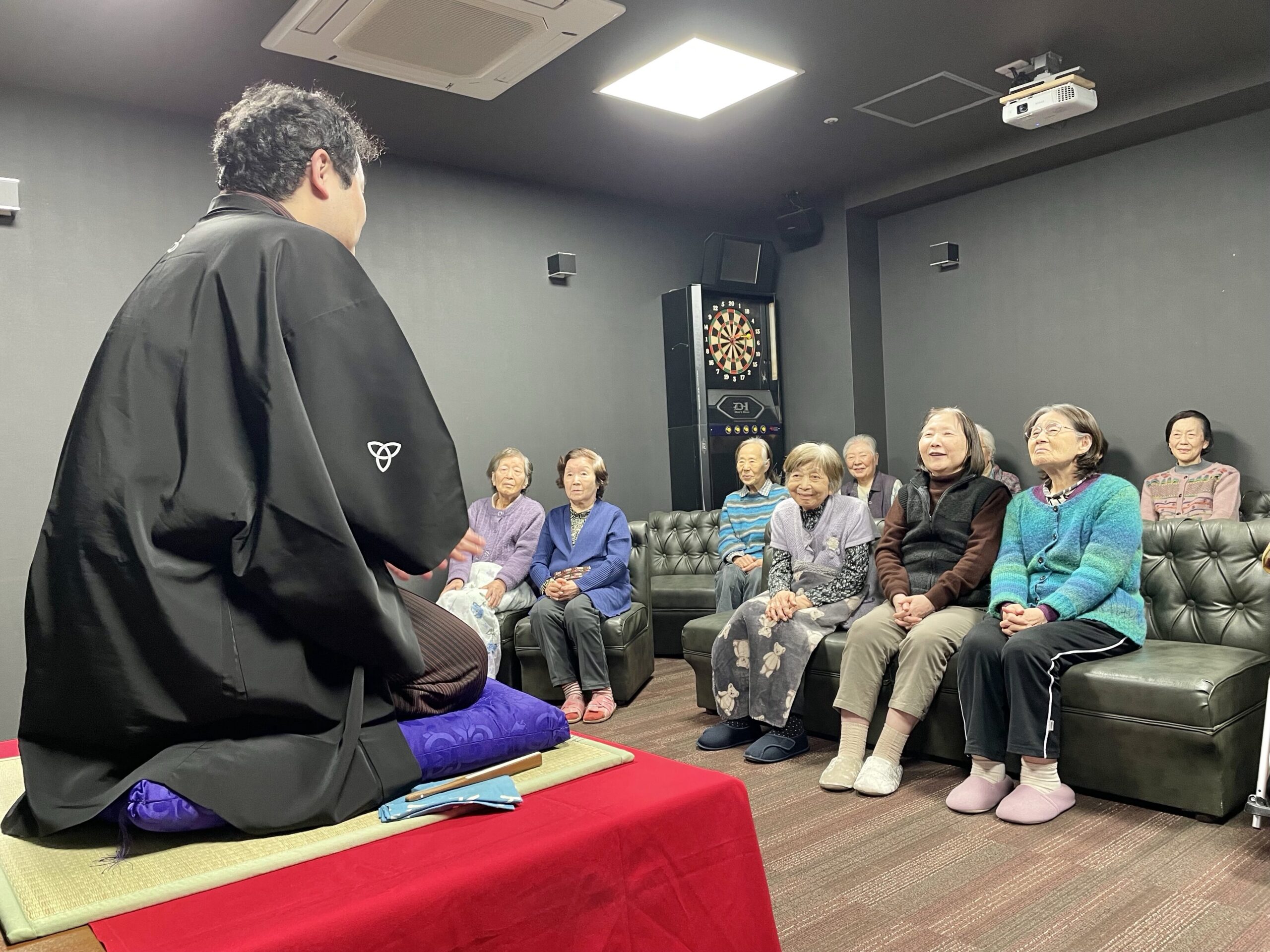 「たくさん笑うことは長生きの秘訣!!思いきり笑ってください!!!」と、三河さんの素敵な言葉で落語会スタートです♡