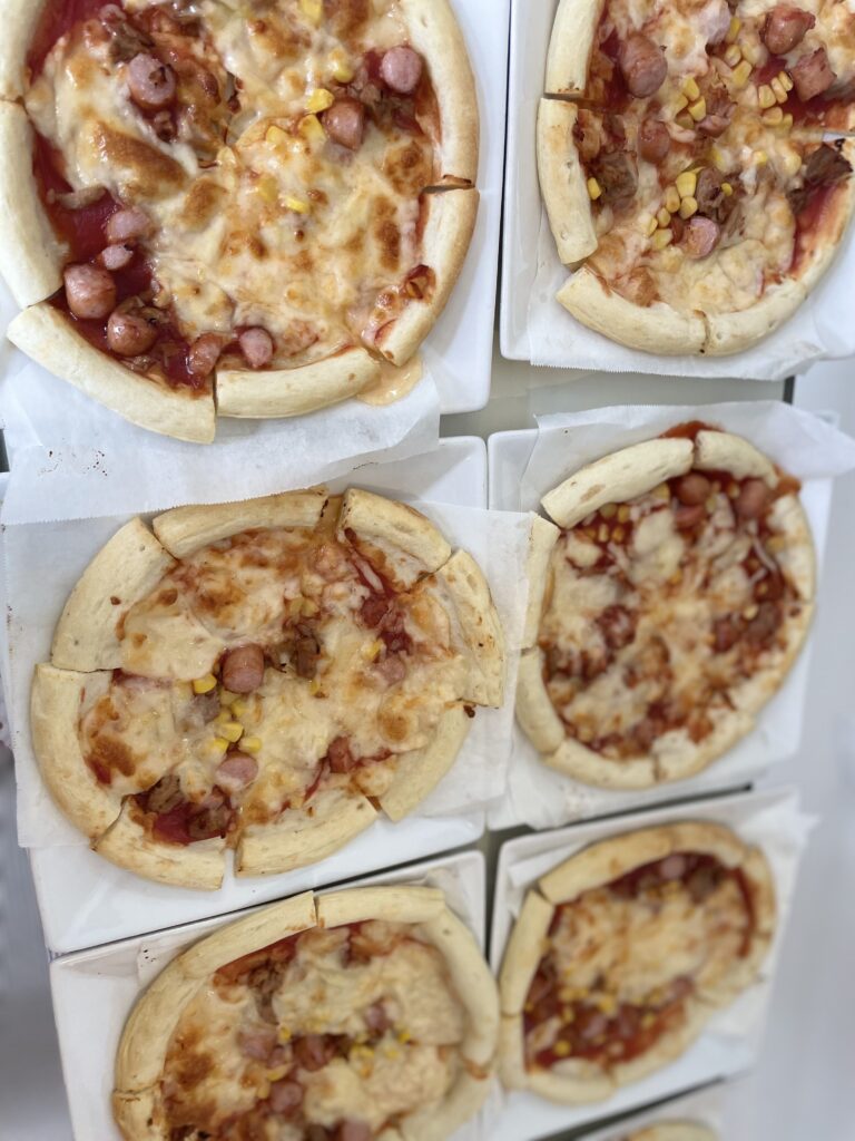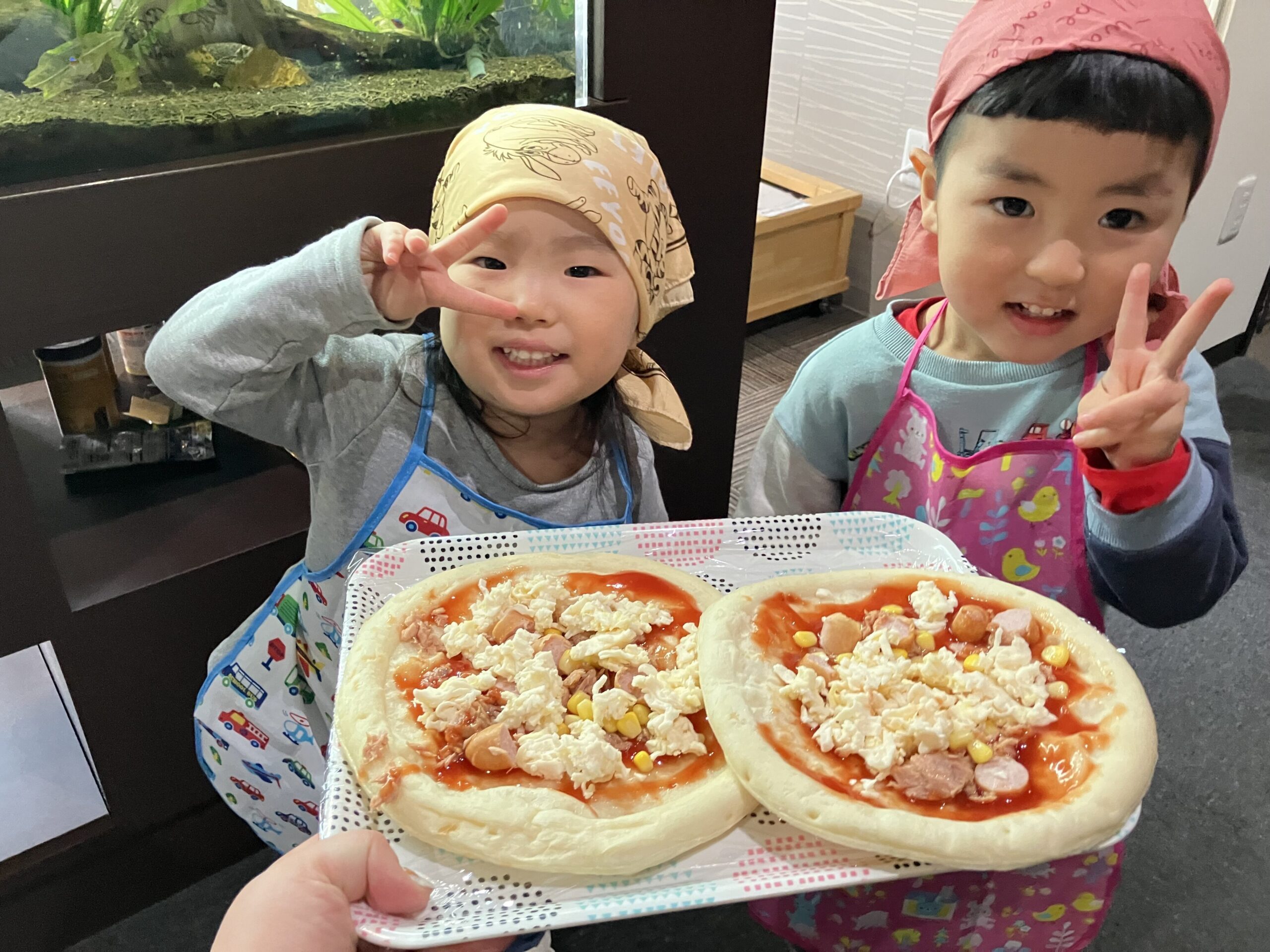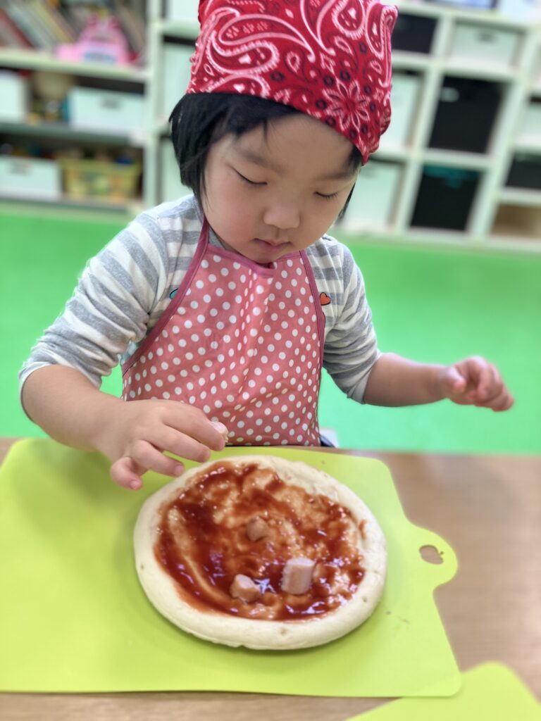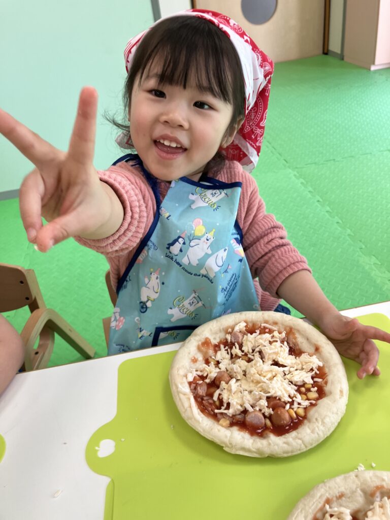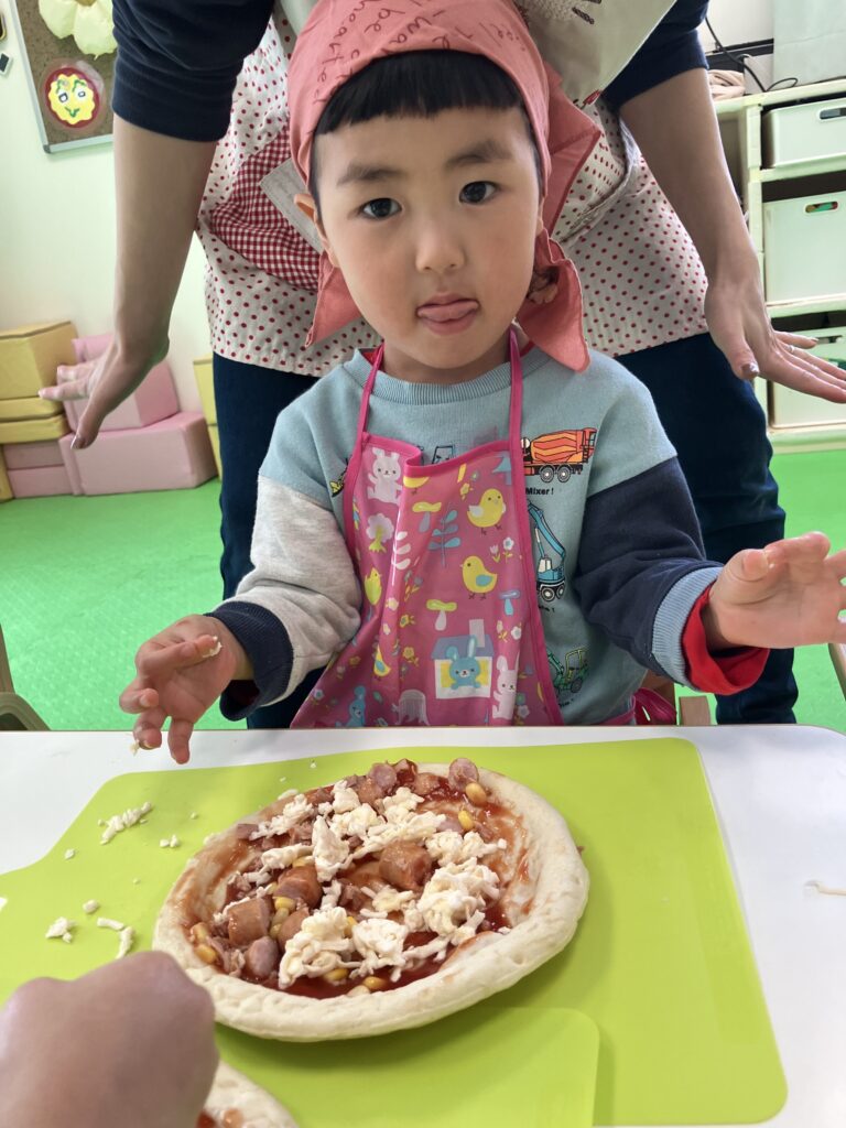 先日、子どもたちと制作ピザ作りをしたので子供達もイメージが付いていてスムーズに作ることができました。