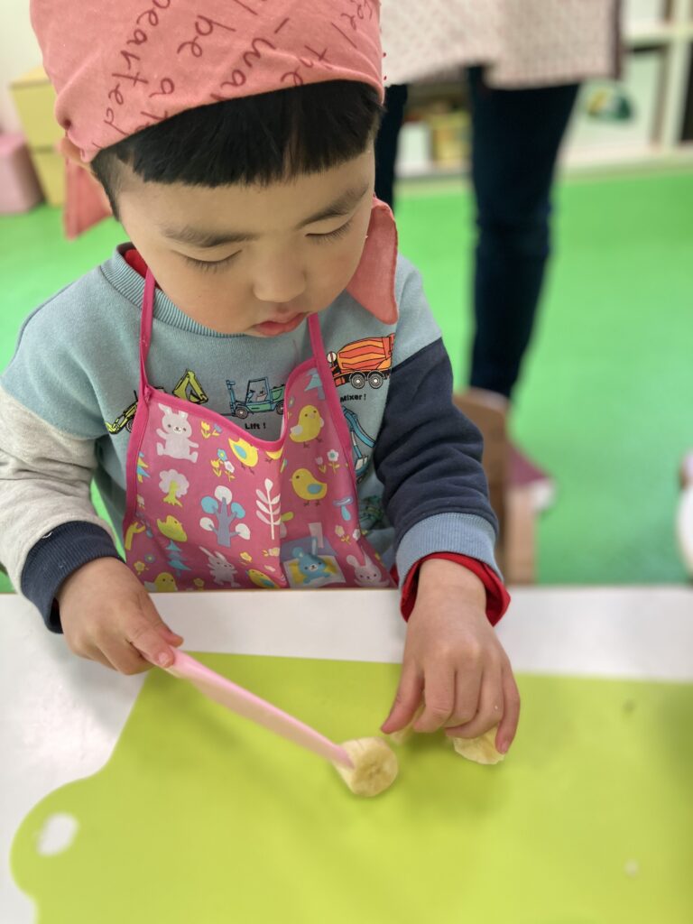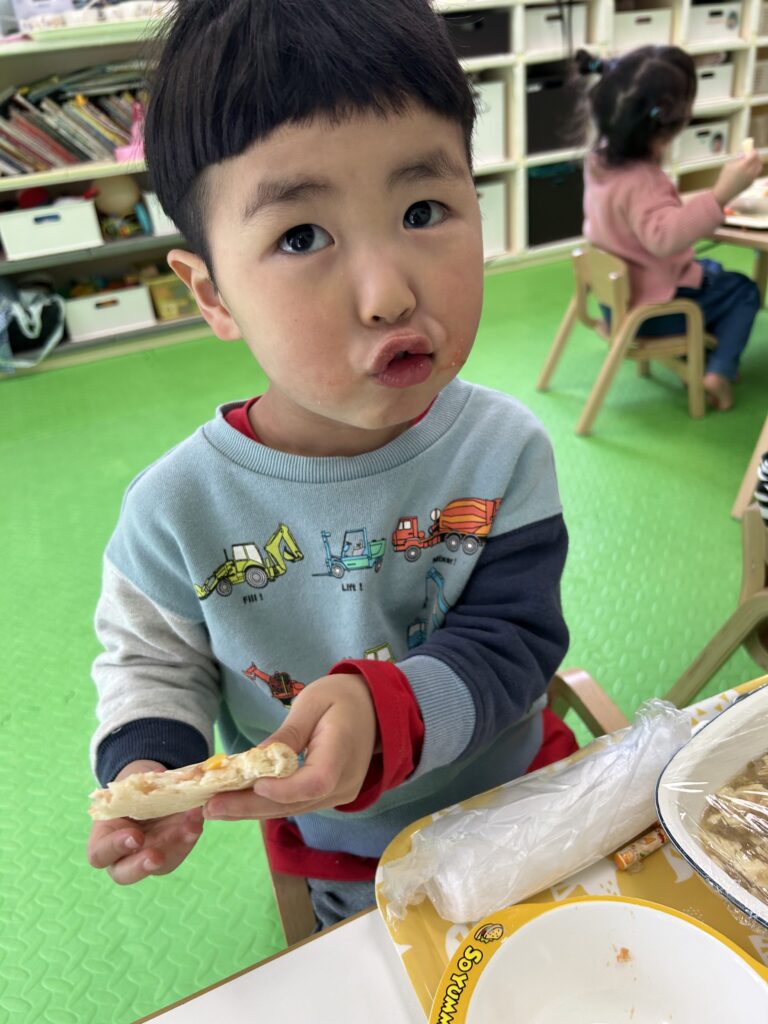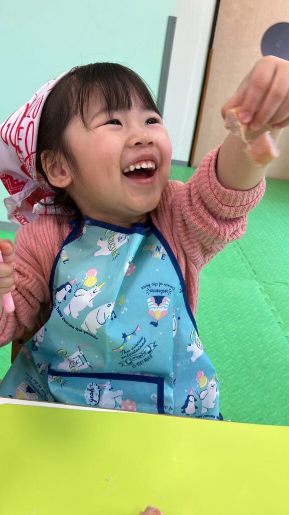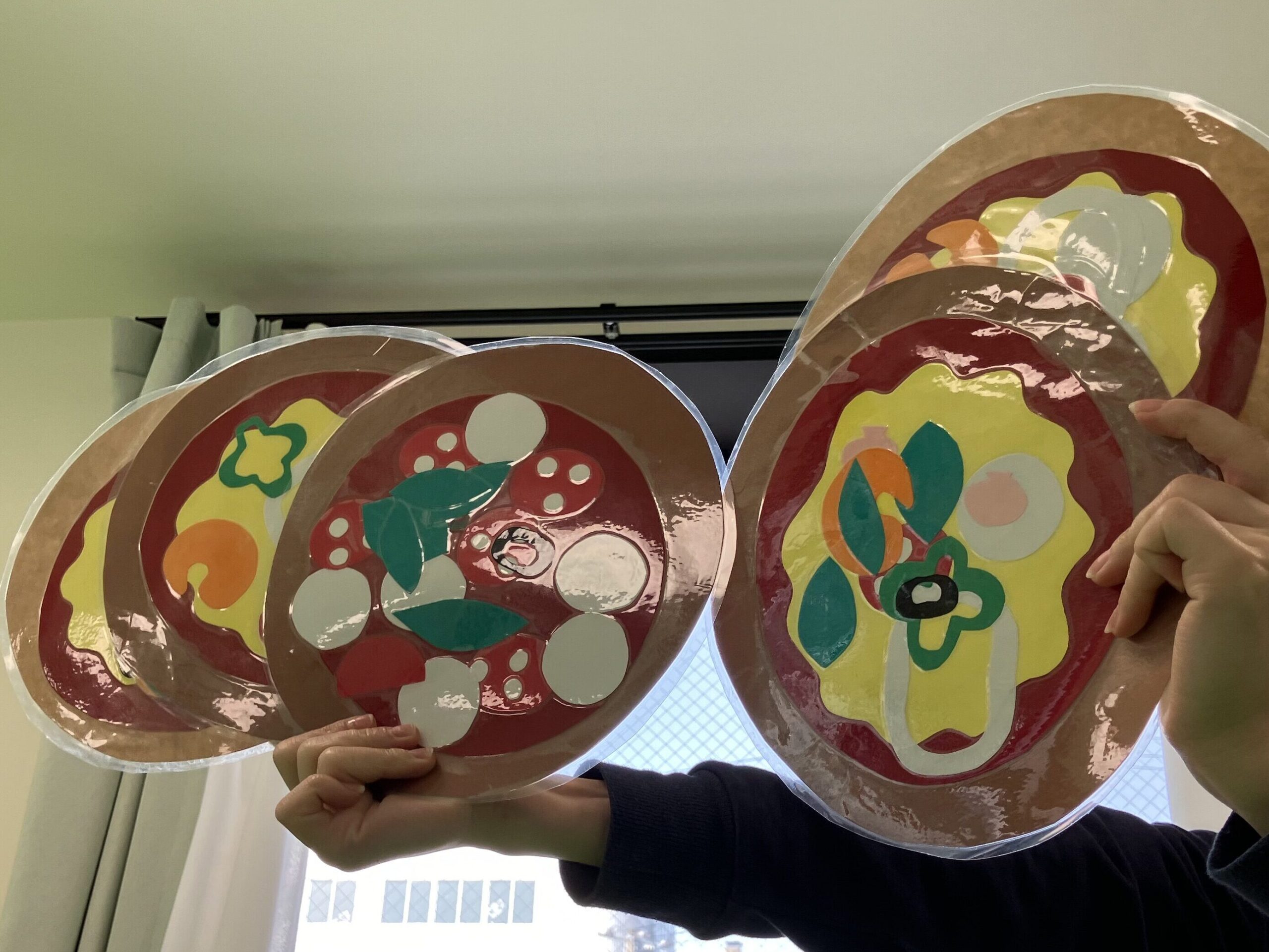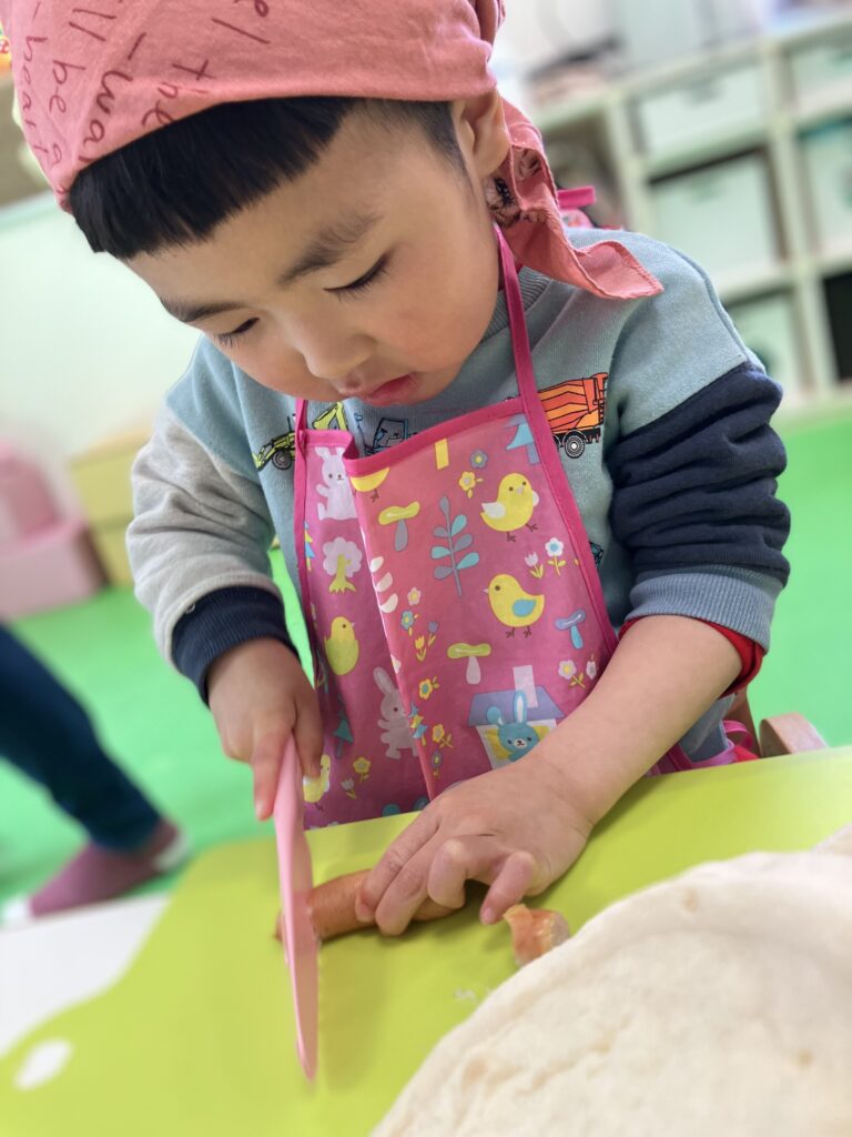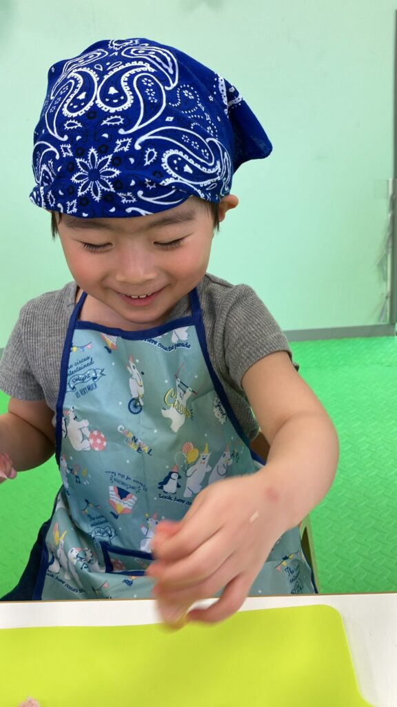 先日、子どもたちと制作ピザ作りをしたので子供達もイメージが付いていてスムーズに作ることができました。