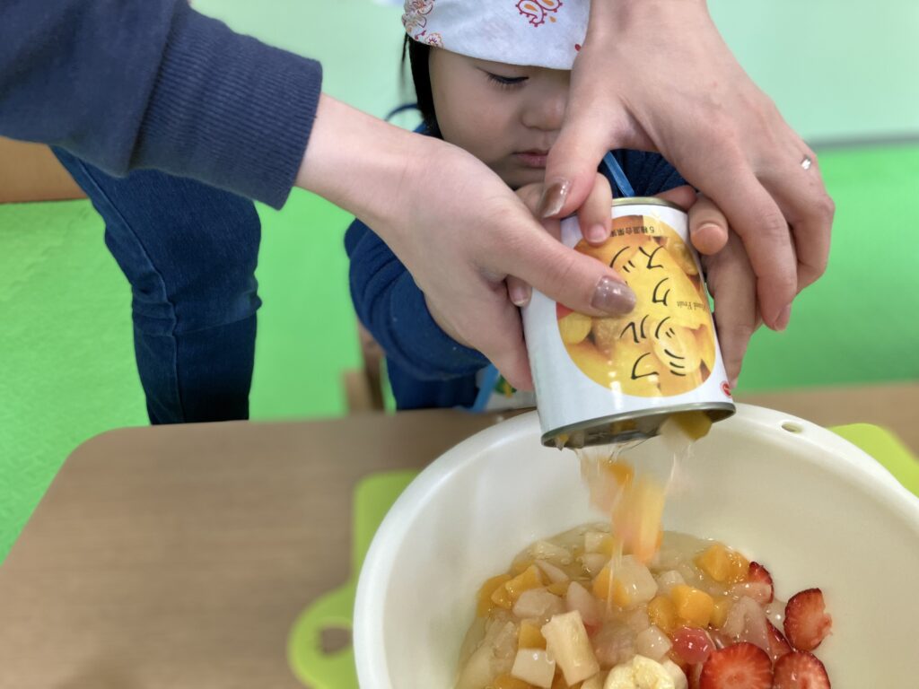そして、お昼寝後のおやつは、??フルーツポンチ??