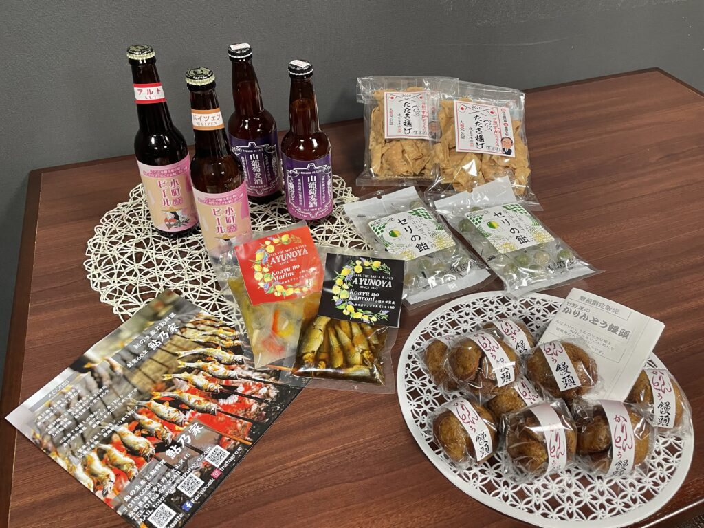 おつまみには鮎の家の小鮎の甘露煮、マリネ、そして老舗和菓子屋‼︎竹野屋の数量限定のかりんとう饅頭やお菓子をご用意させて頂きました😋