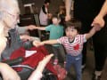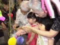 馬場保育士の手品に、ご利用者さんと子どもたちもびっくりして驚き顔です?