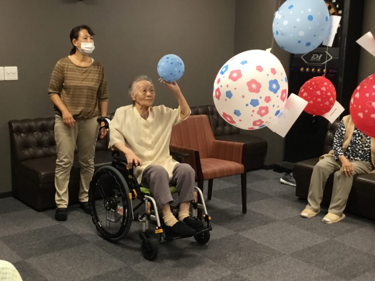 別館では午後から恒例のACTが行われました?点数の書かれた風船に風船をぶつけるという斬新なスポーツ…見た目がなんだか綺麗です?✨