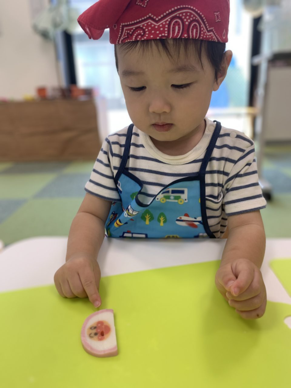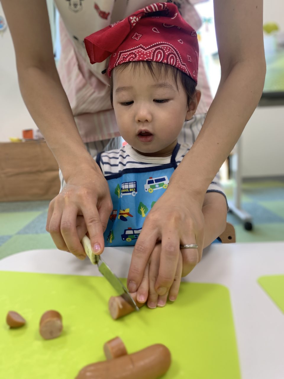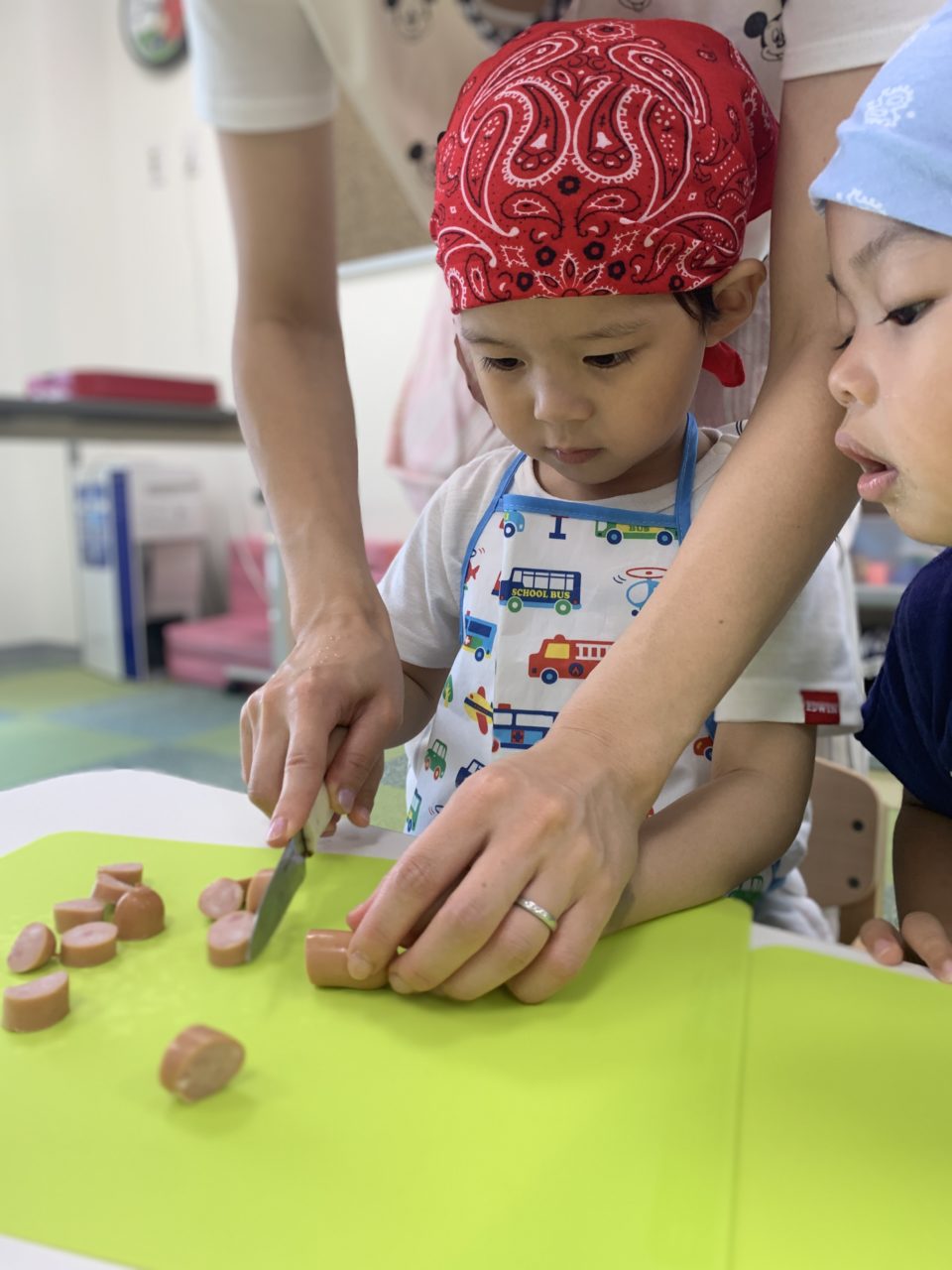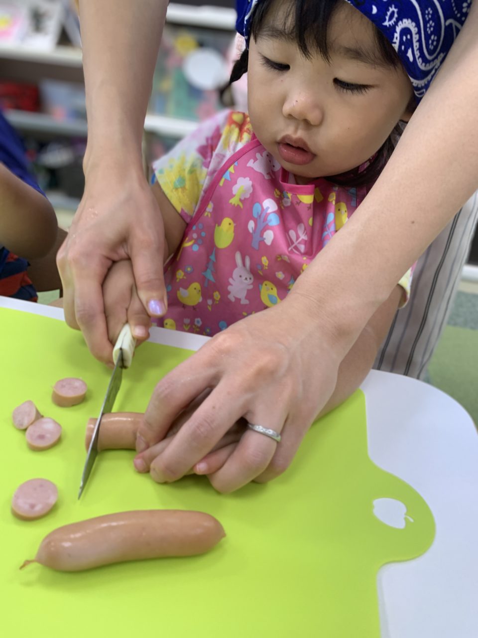 続きまして、ウインナーとアンパンマンかまぼこを切っていきまーす??♀️?