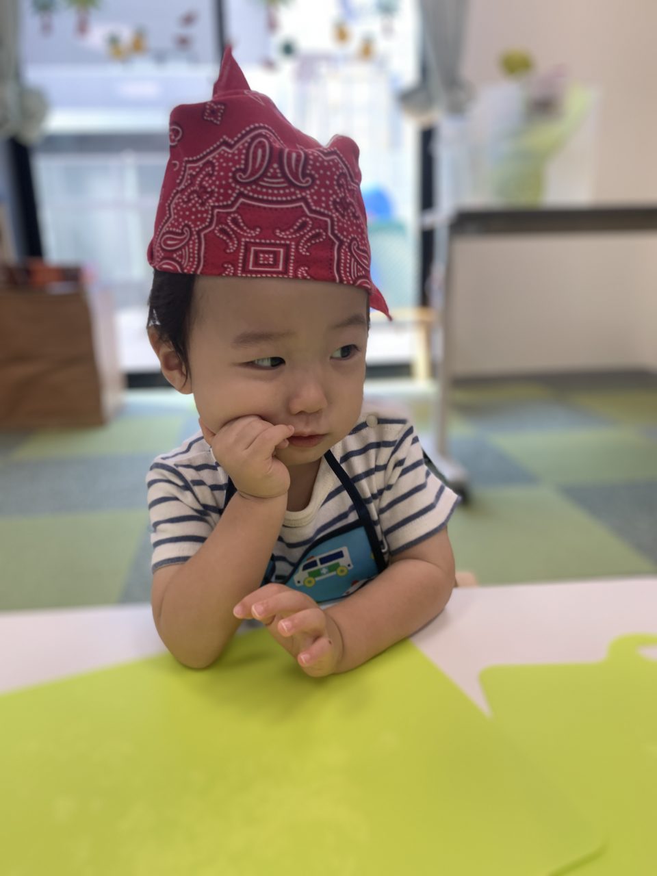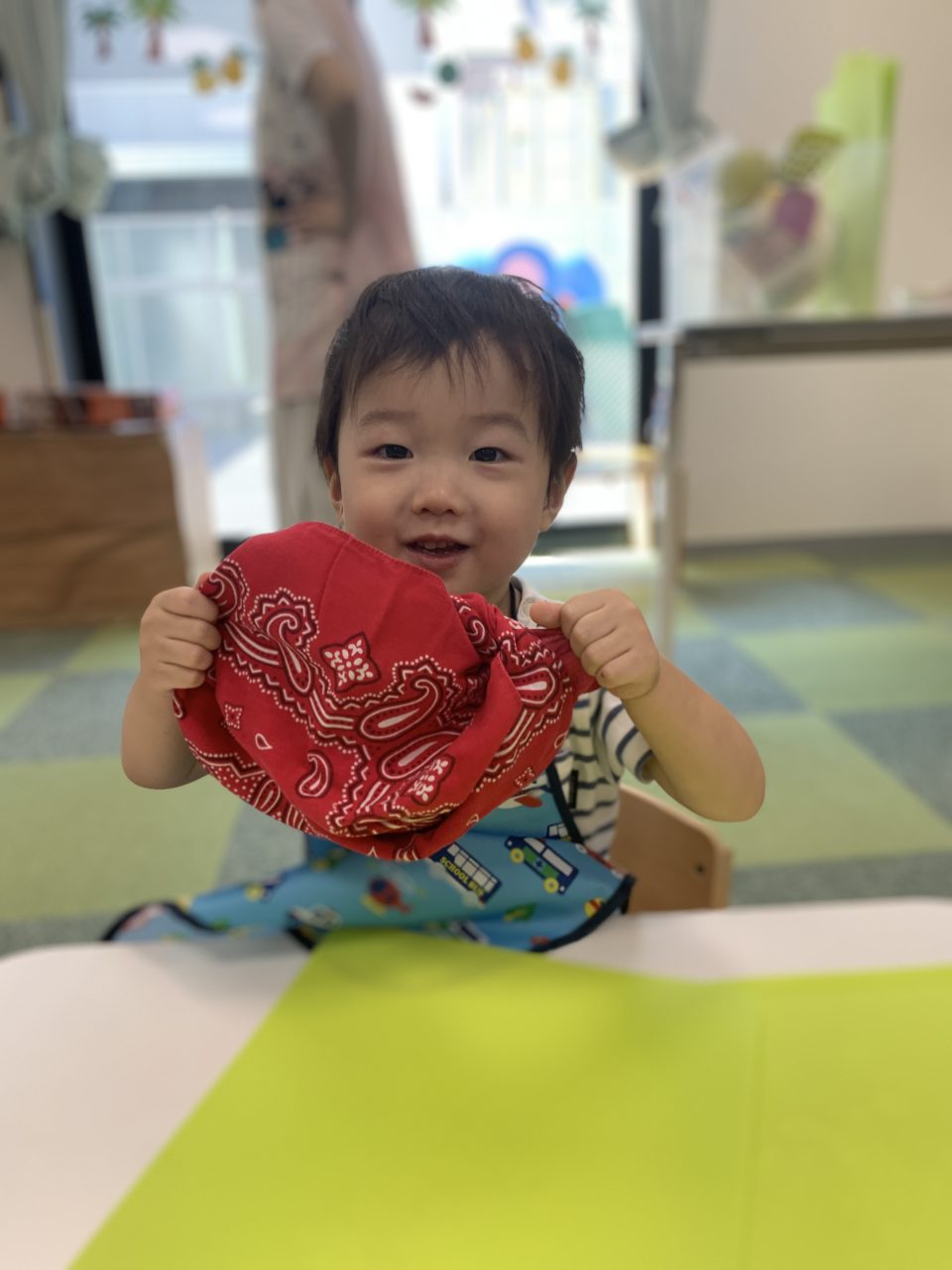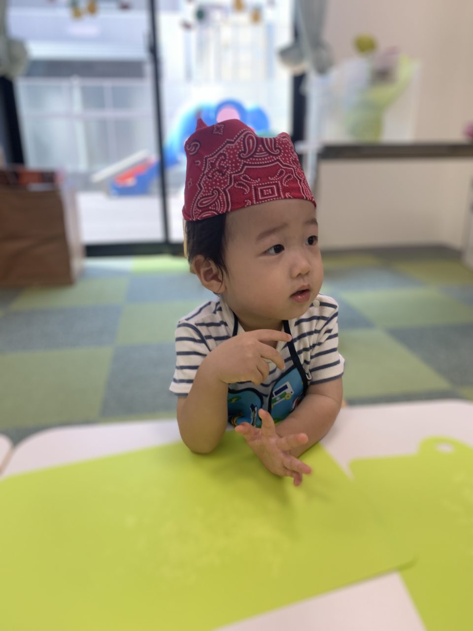 ??♀️たこ焼きするよ〜の声にエプロン、バンダナの準備もとても素早い子ども達?❤️やる気満々です?