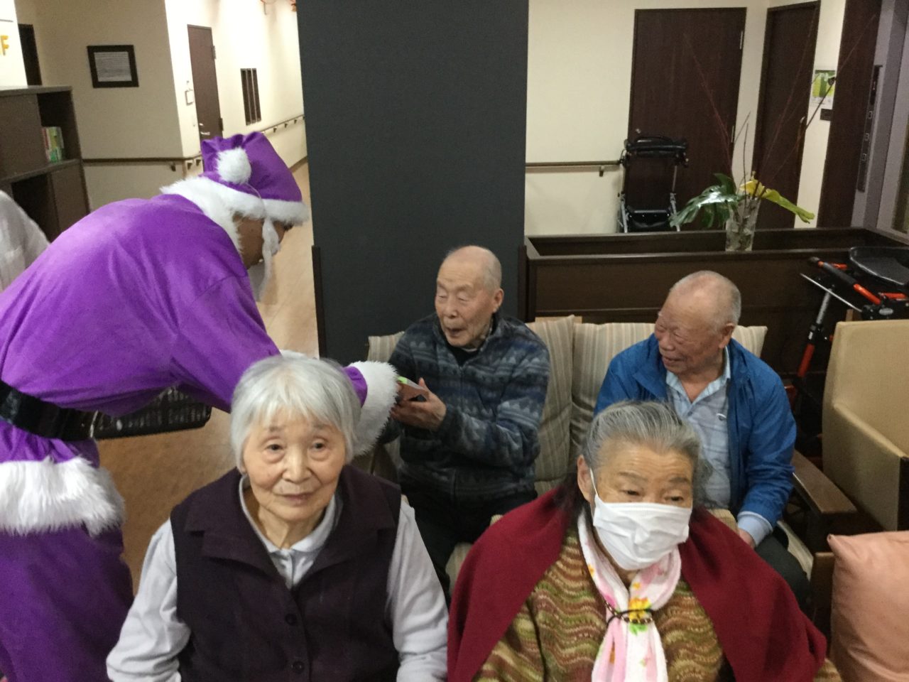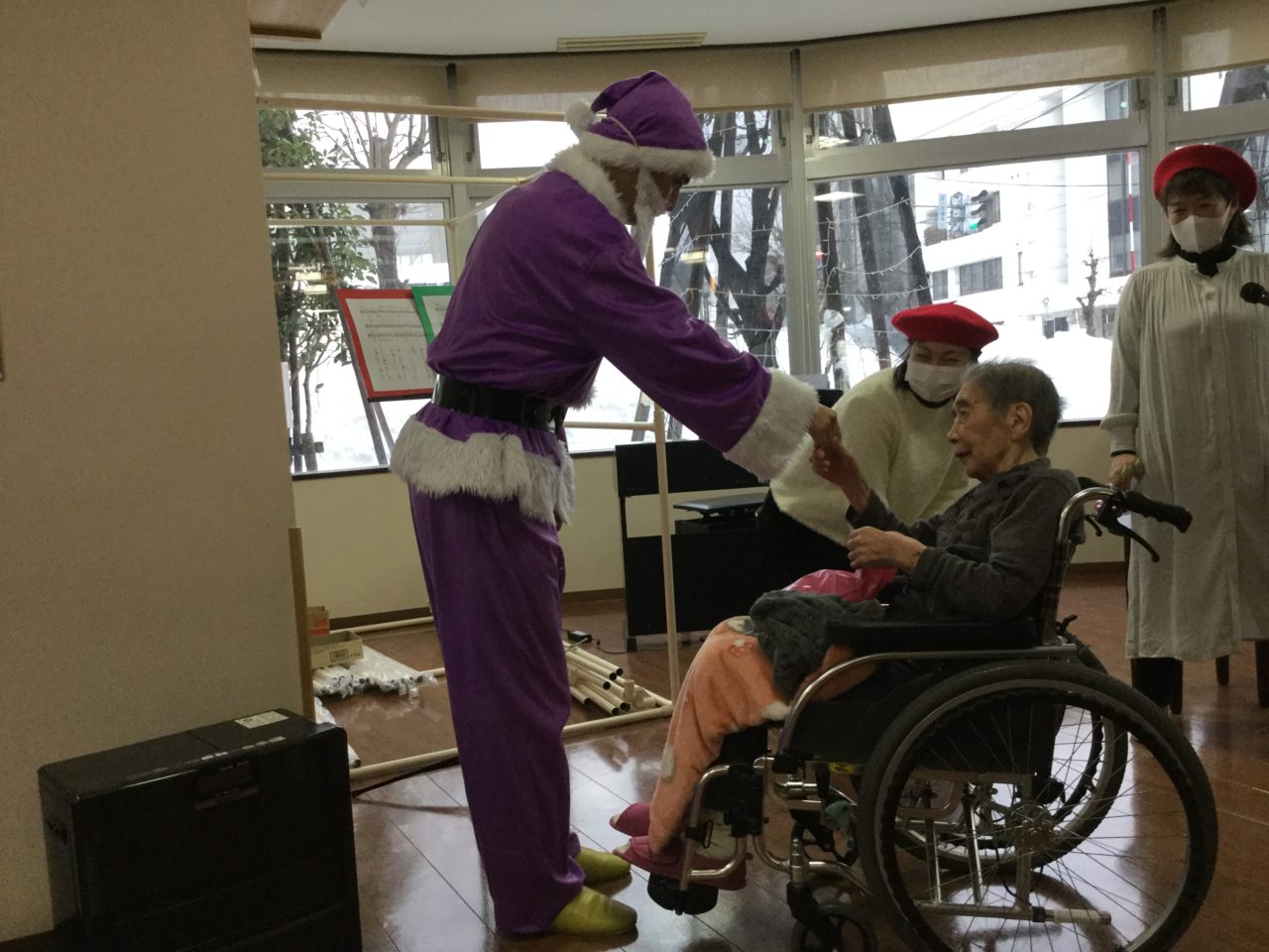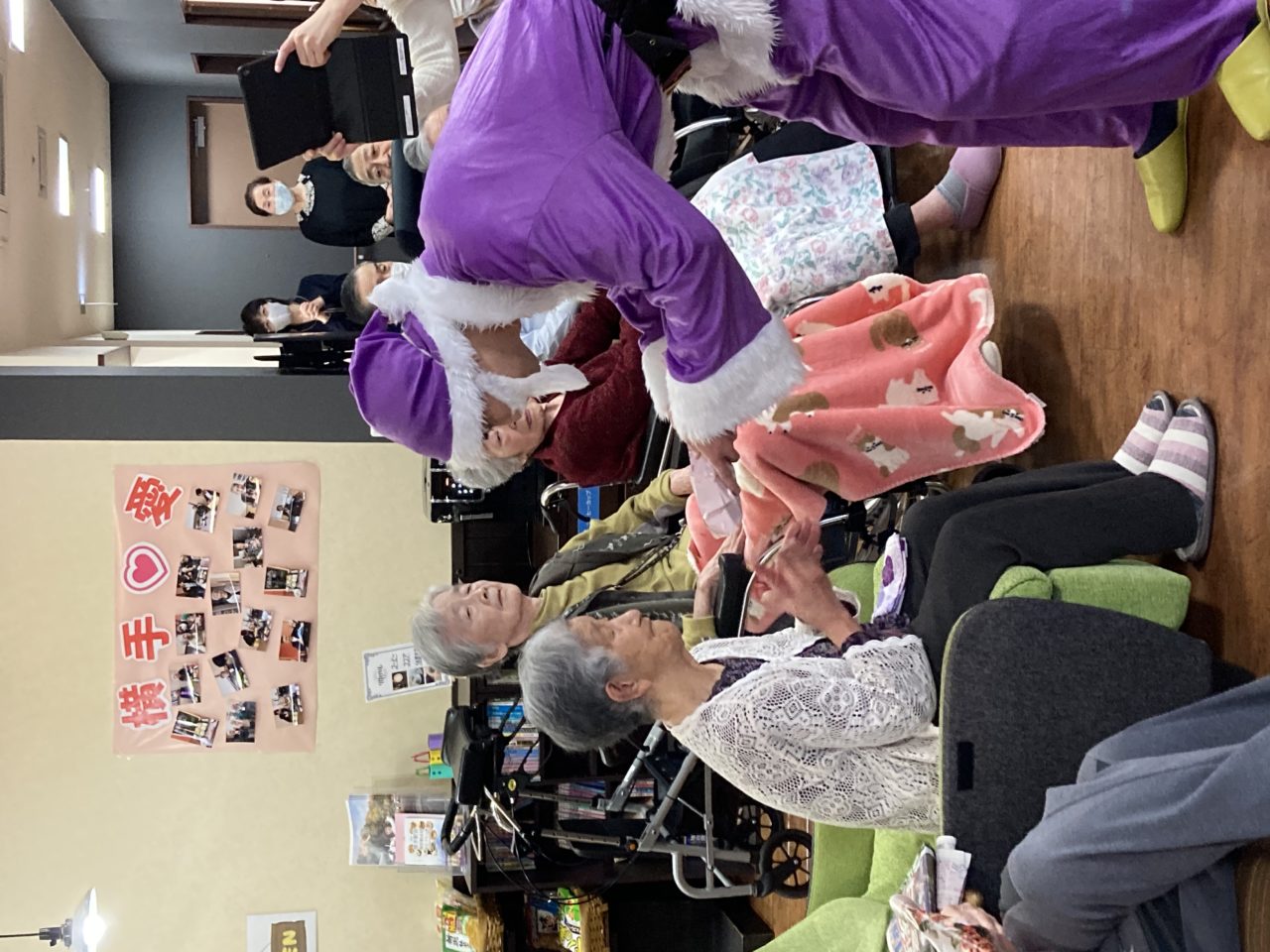 いよいよサンタクロースが登場です?さらさ横手のサンタは紫色⭐️一人一人プレゼントをもらい大喜びです?