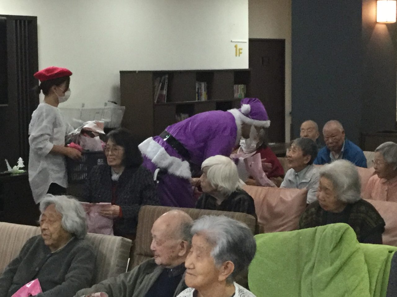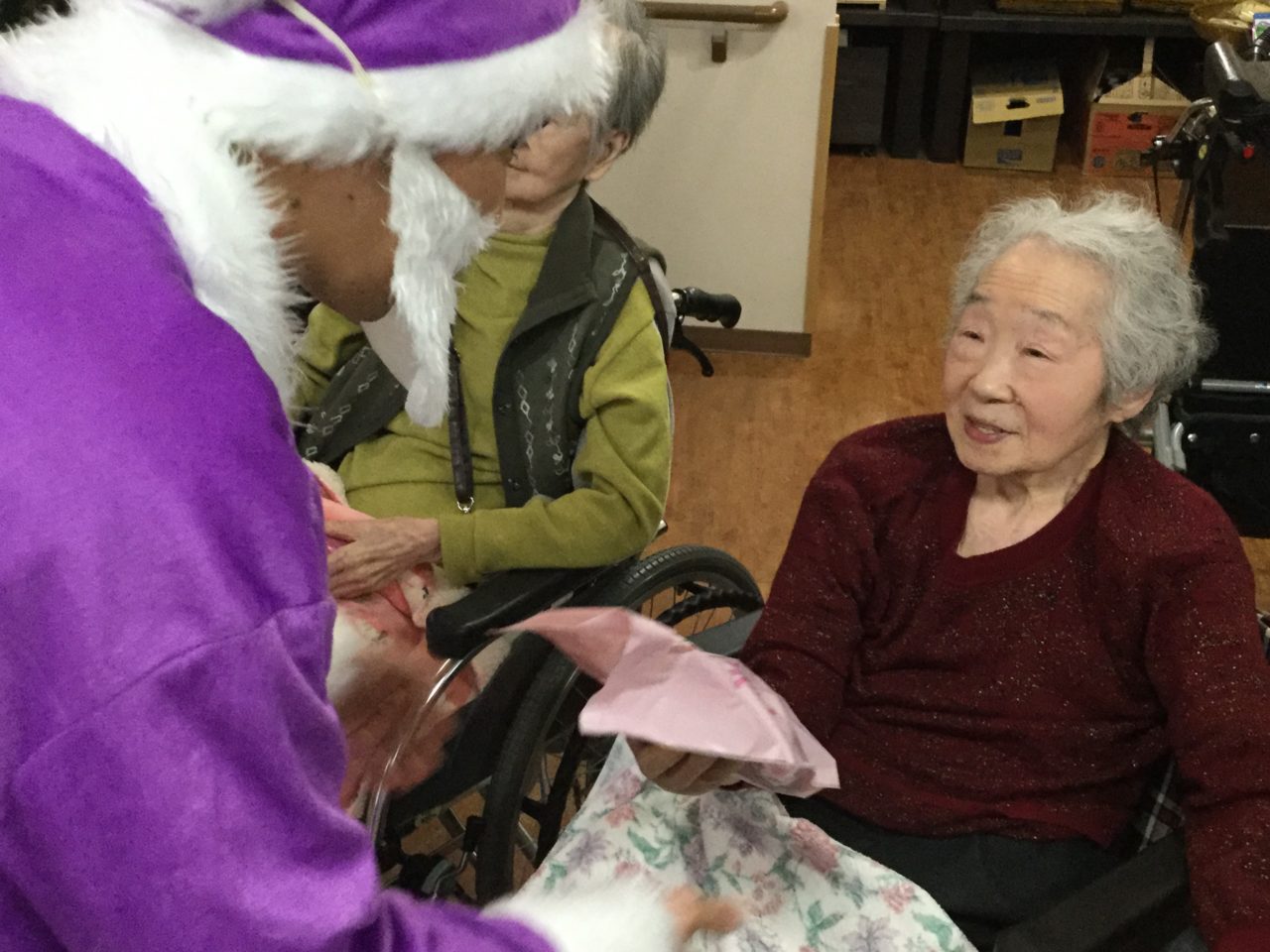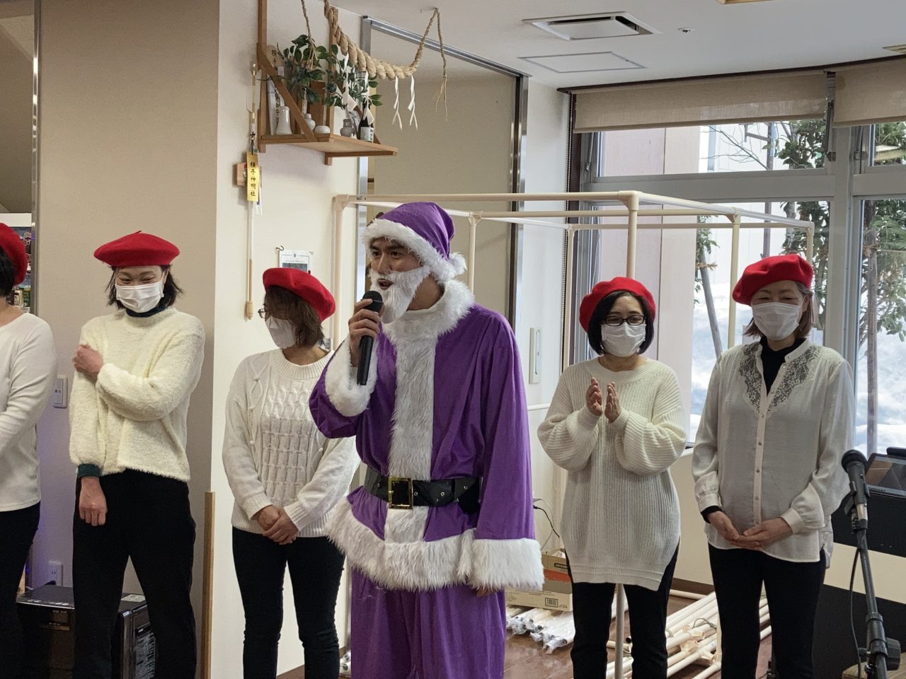 いよいよサンタクロースが登場です?さらさ横手のサンタは紫色⭐️一人一人プレゼントをもらい大喜びです?
