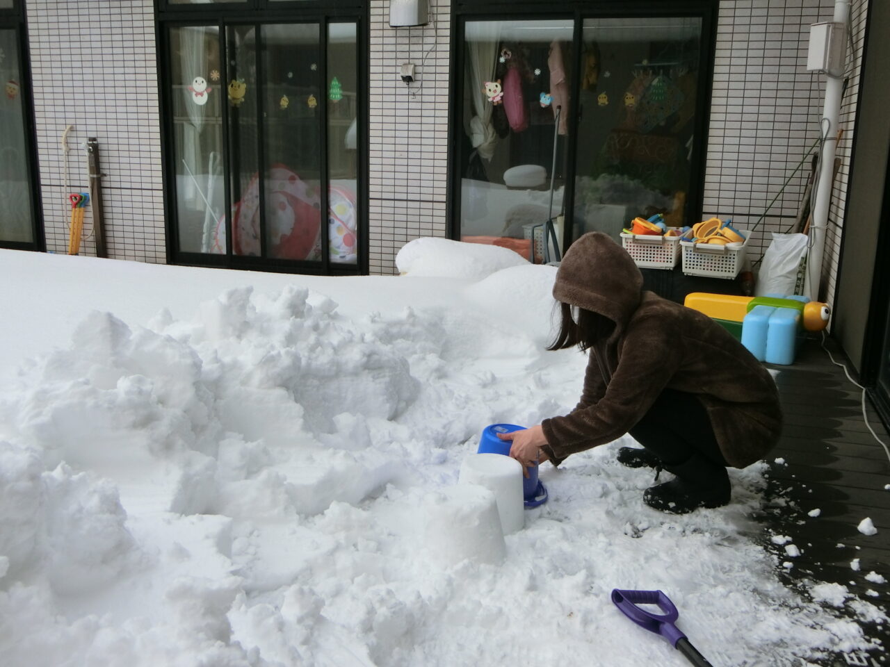 ミニかまくらはバケツを使うと簡単ですよ!!