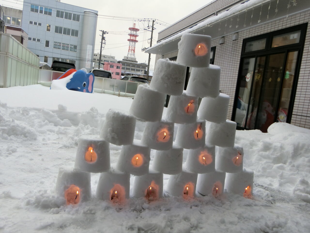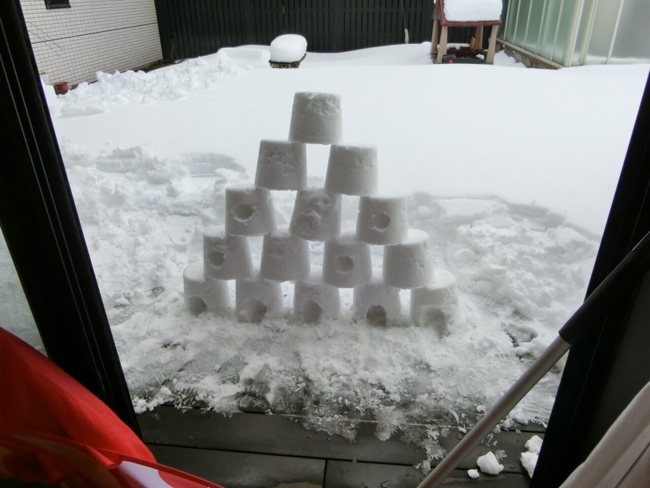 バケツを使ったミニかまくらはお手軽で作りもしっかりしてますし、重ねるとまた見栄えいいですね!さすが本場の横手仕込み!