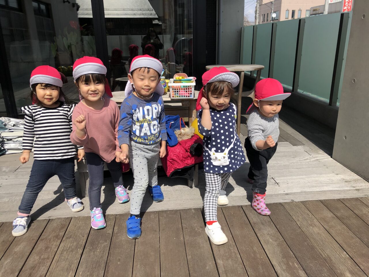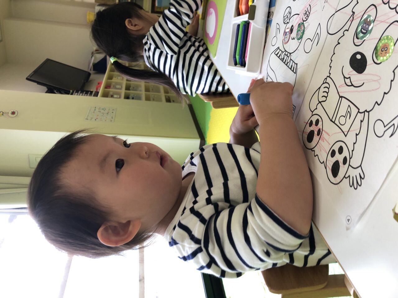初登園日、お母さんから離れて少し泣いていましたが徐々に慣れてきたようで今では嬉しそうに登園してくれています?