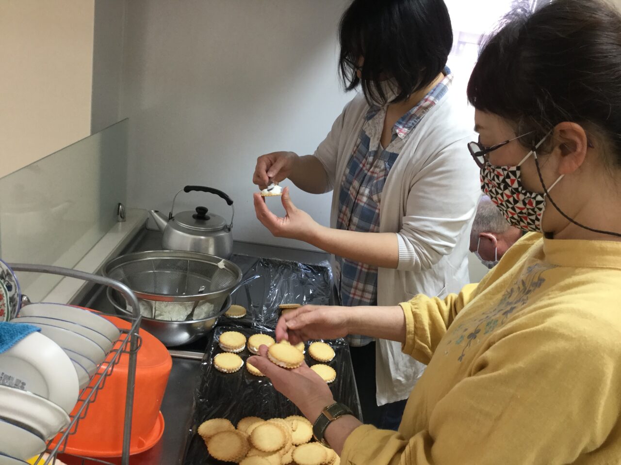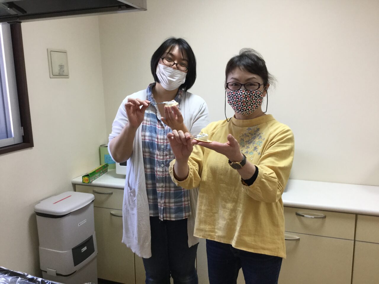 午前中に準備しておいた腸活ケーキ?とピーチティー?を配ります?