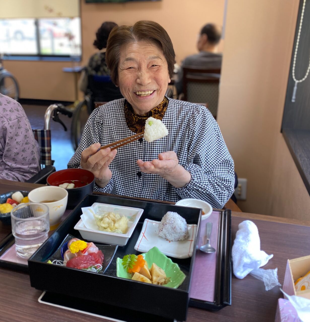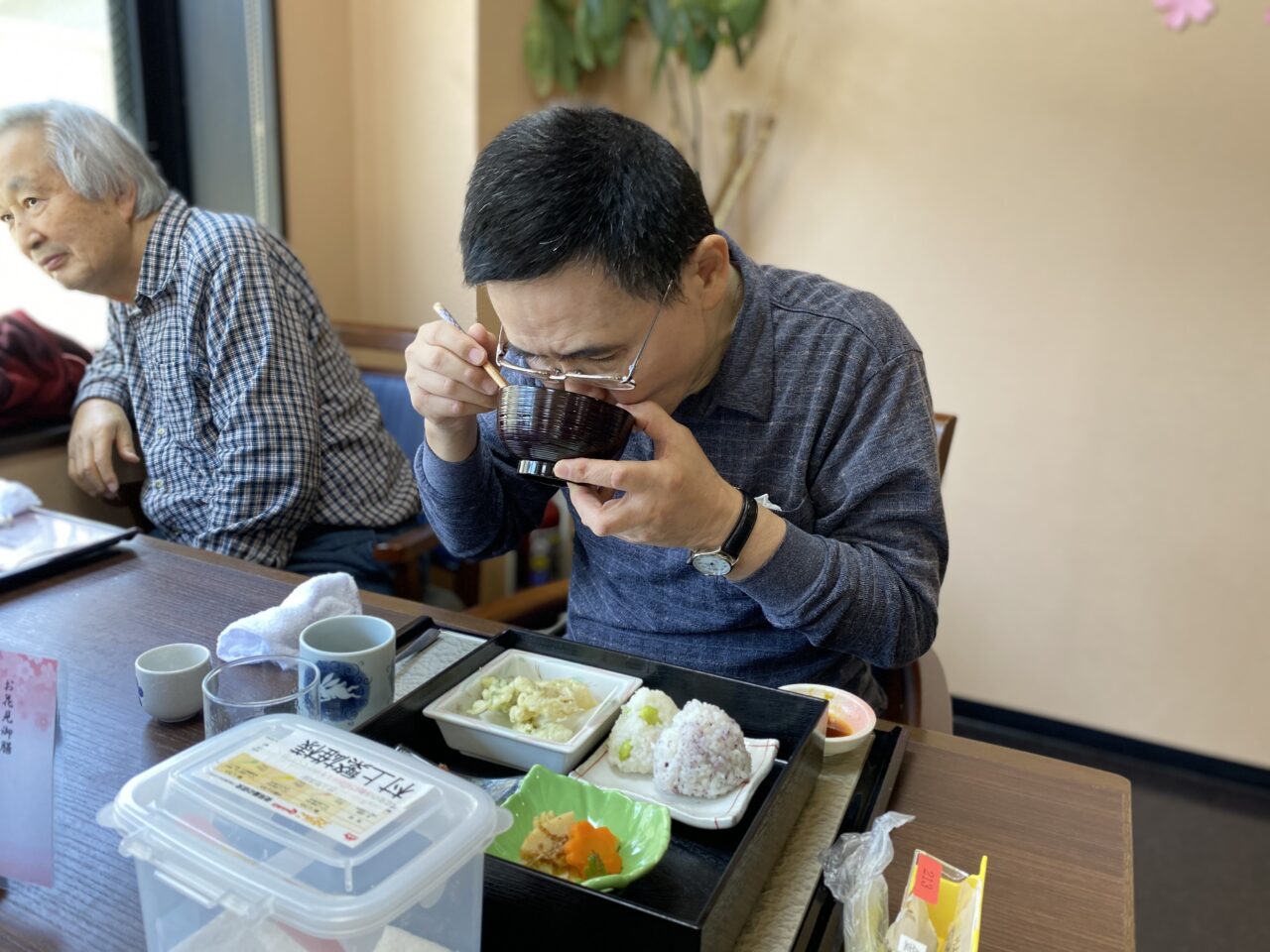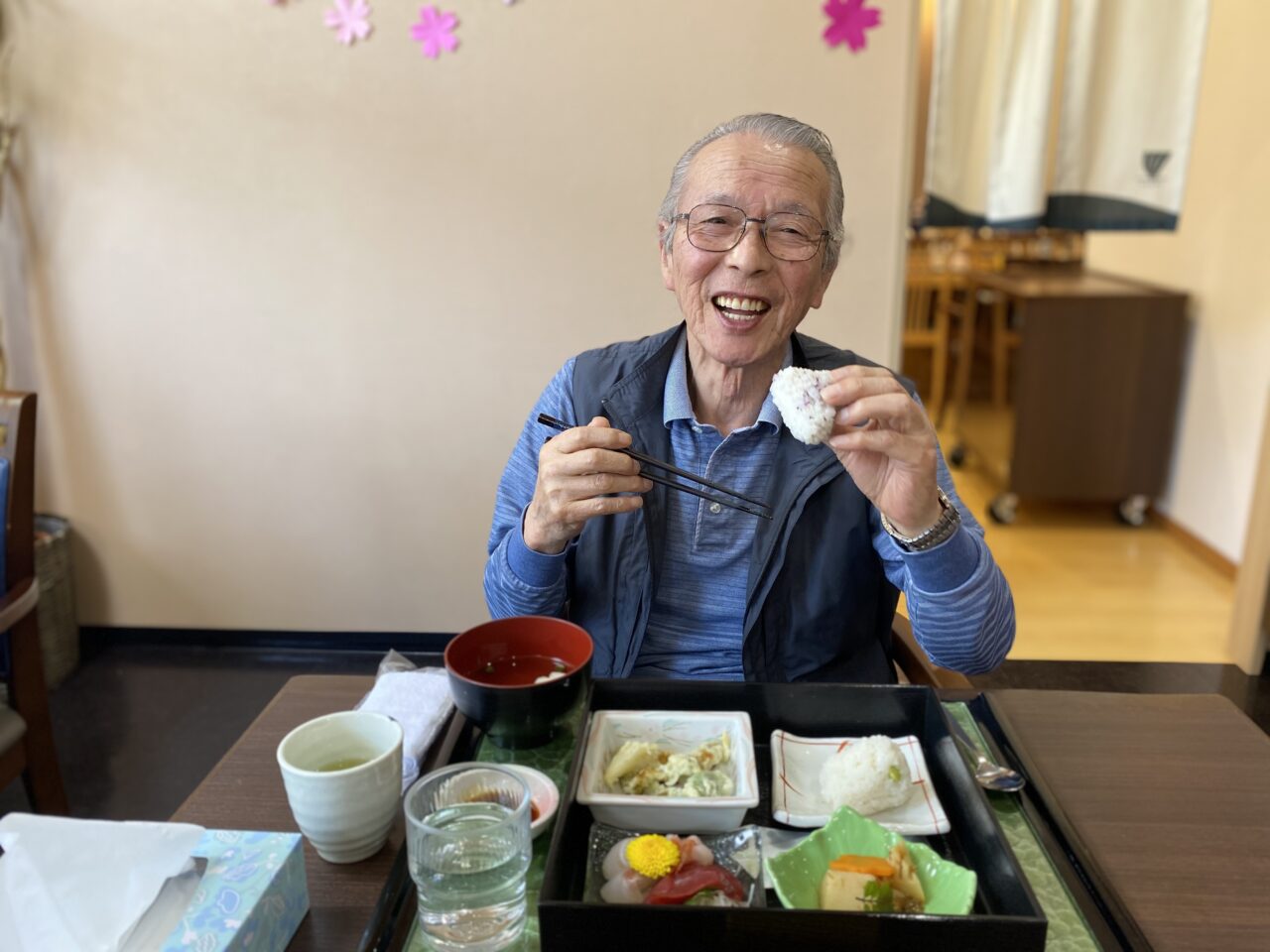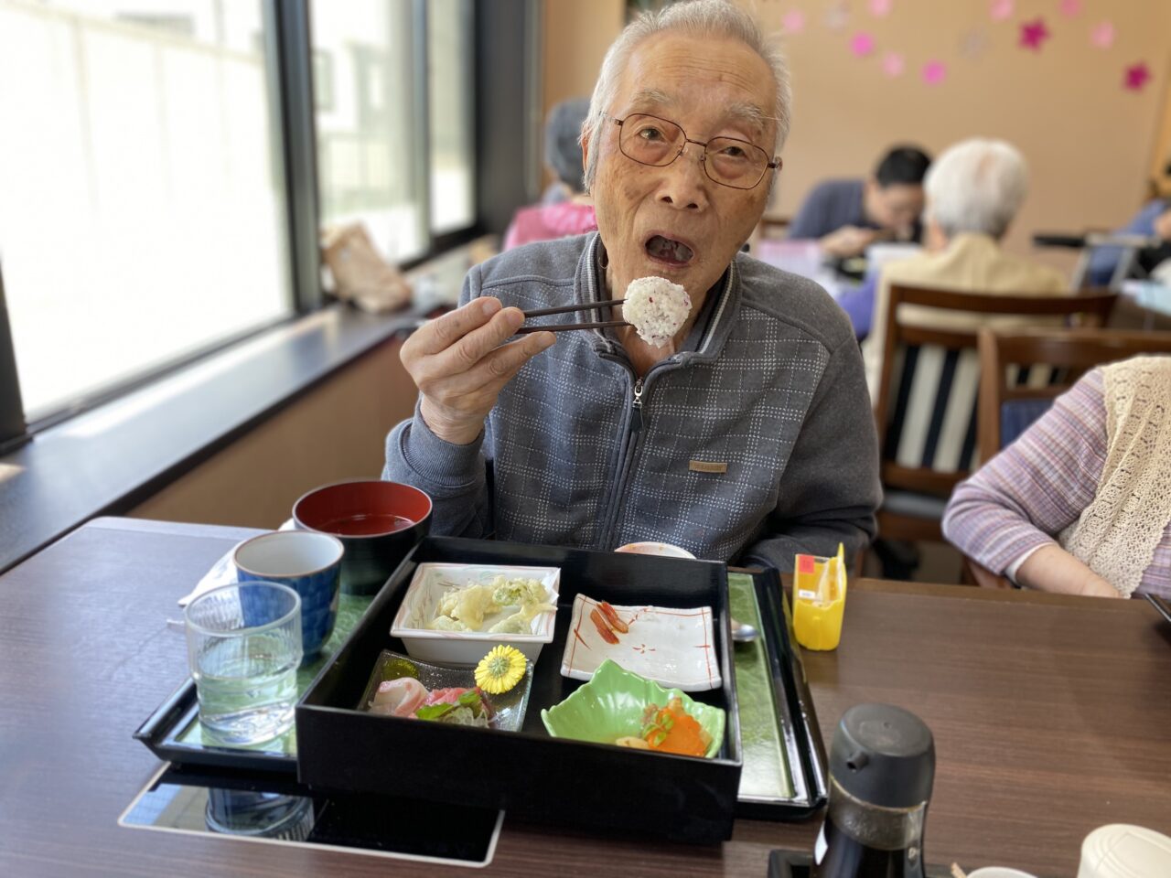 今日は春祭り風の館内で「お花見御前」を召し上がって頂きました?✨