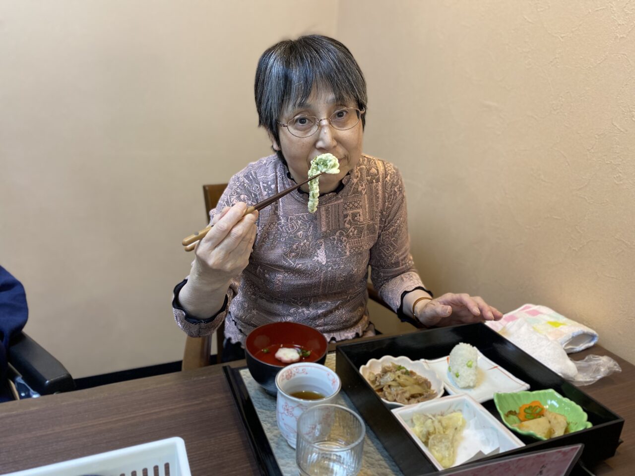 そして🌸お花見御膳は彩りがよく、旬の食材を使っており美味しそう。😃山菜の天麩羅は揚げ立てで音が聞こえて食欲をそそりますね❗😋