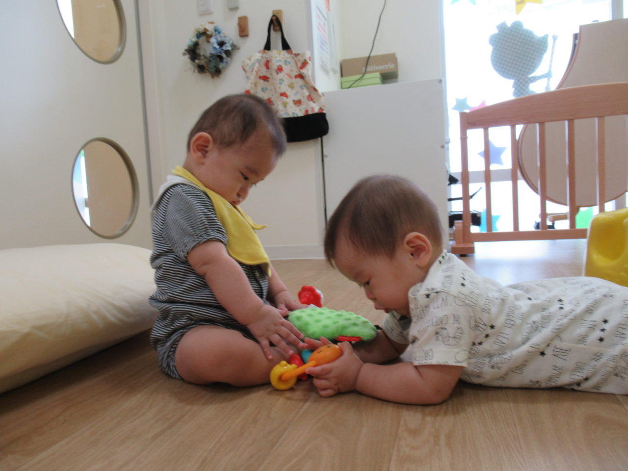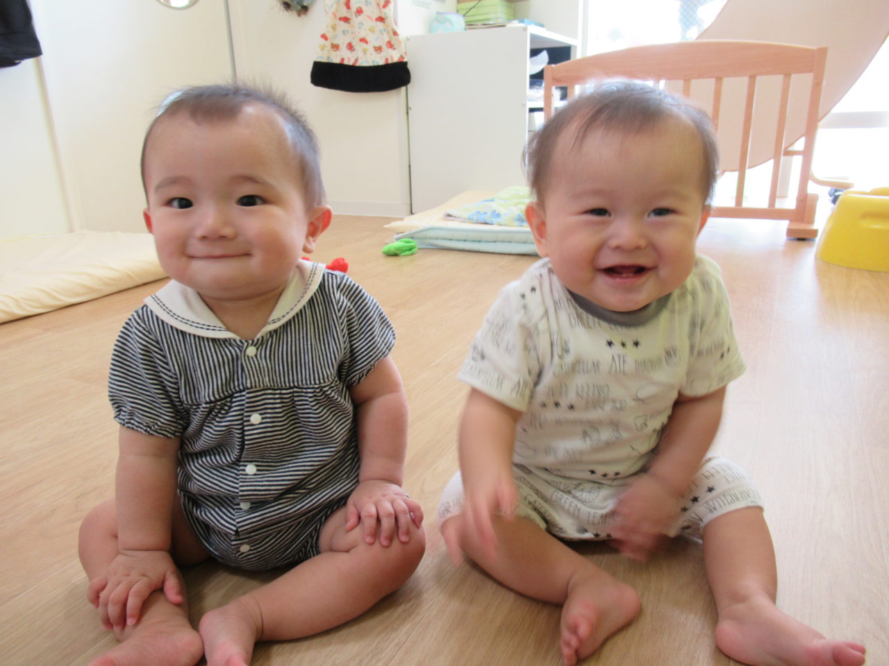 Iくんは、ずりばいが上手になり、Hくんはハイハイが出来るようになって、