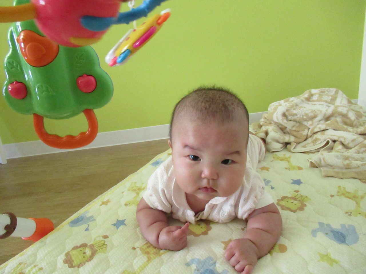 寝返りができるようになり、ちゃ~んとカメラ目線でこちらを見れるように