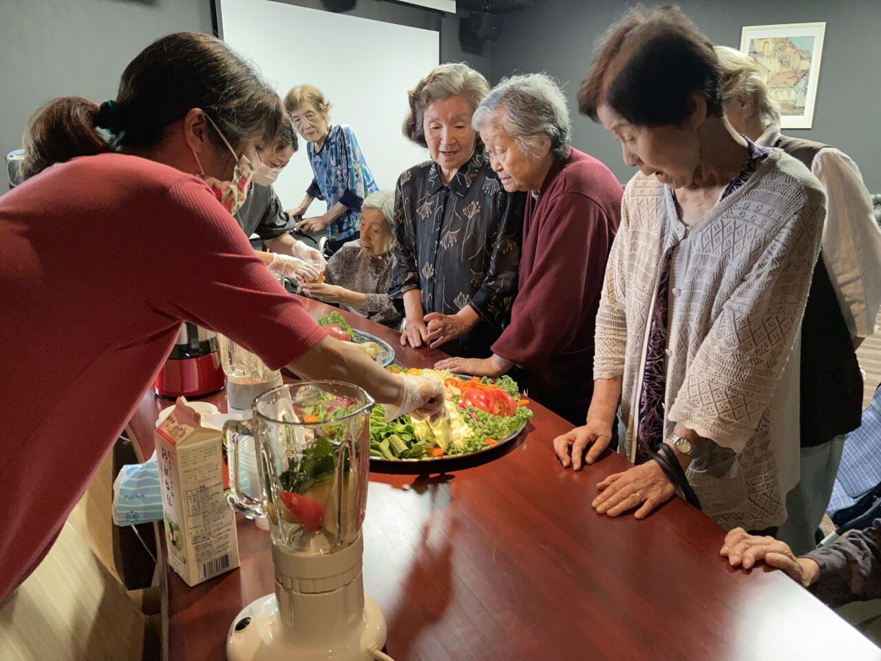 ミキシングを短めにしとろっとした食感にしたり、長めにしサラッとした喉ごしにしたりとデザート感覚で美味しく頂けるスムージーを皆さん大変喜んで下さいました。