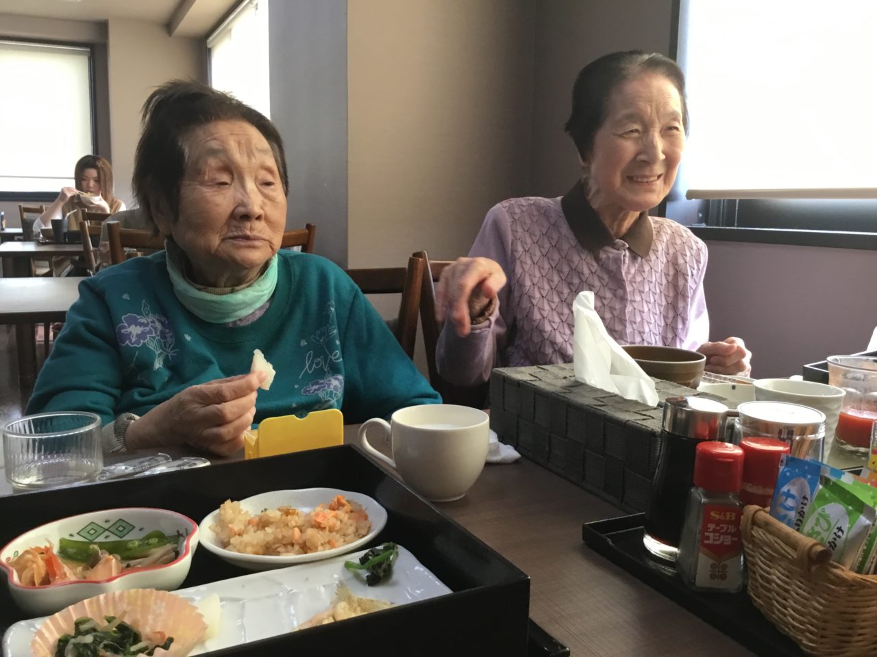 いつもより利用者さん方が少なく寂しいレストランでしたが、「晴れて良かったね」「今頃、お昼何食べてるだろうね」など、旅行組の話で盛り上がる場面もありました?