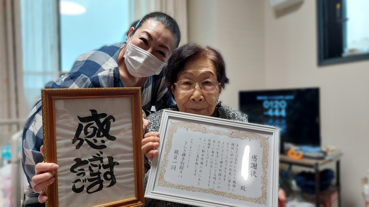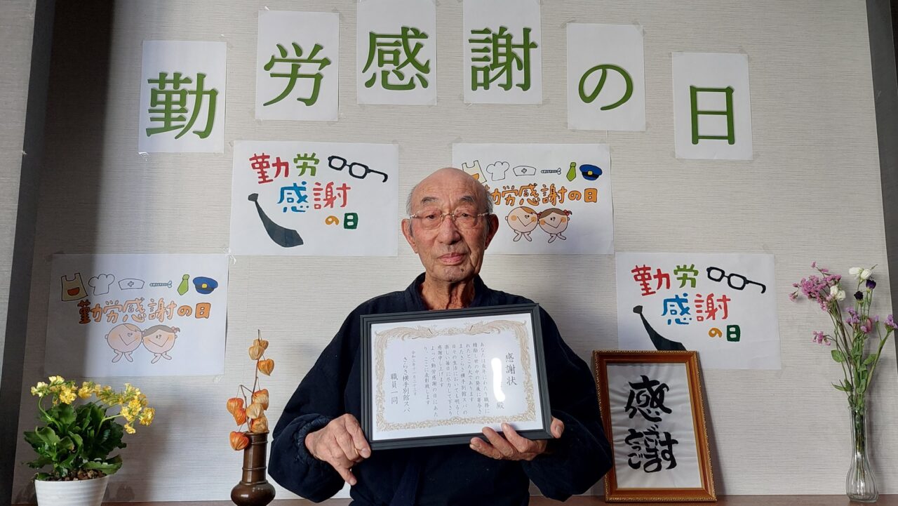 本日勤労感謝の日?さらさ横手別館スパでは、ご利用者さんの皆さんに別館職員より『感謝状』をプレゼント?させて頂きました?