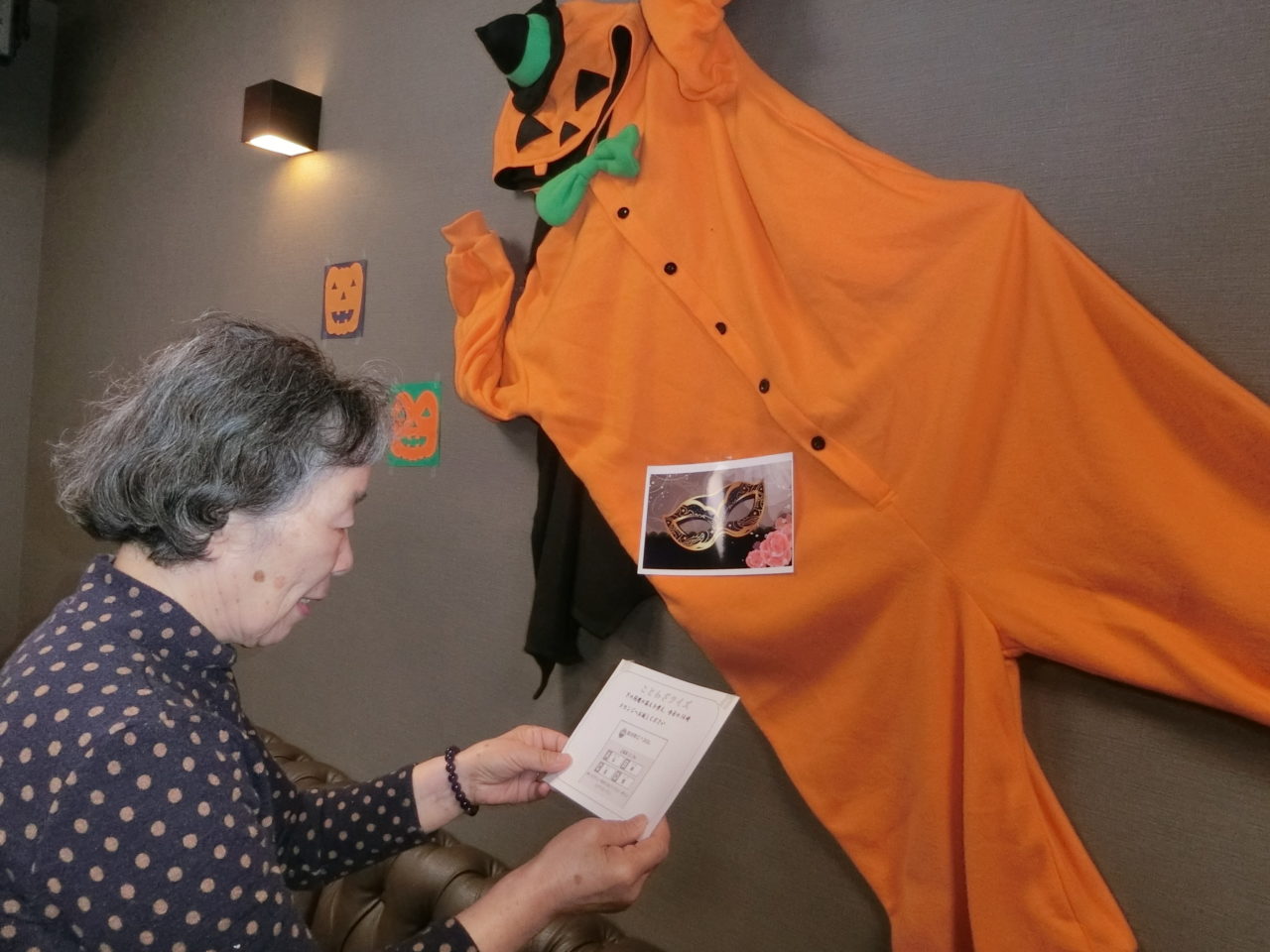 さらさ中にクイズが散りばめられ、答えを考えてカボチャの怪人が待つラウンジへ・・・