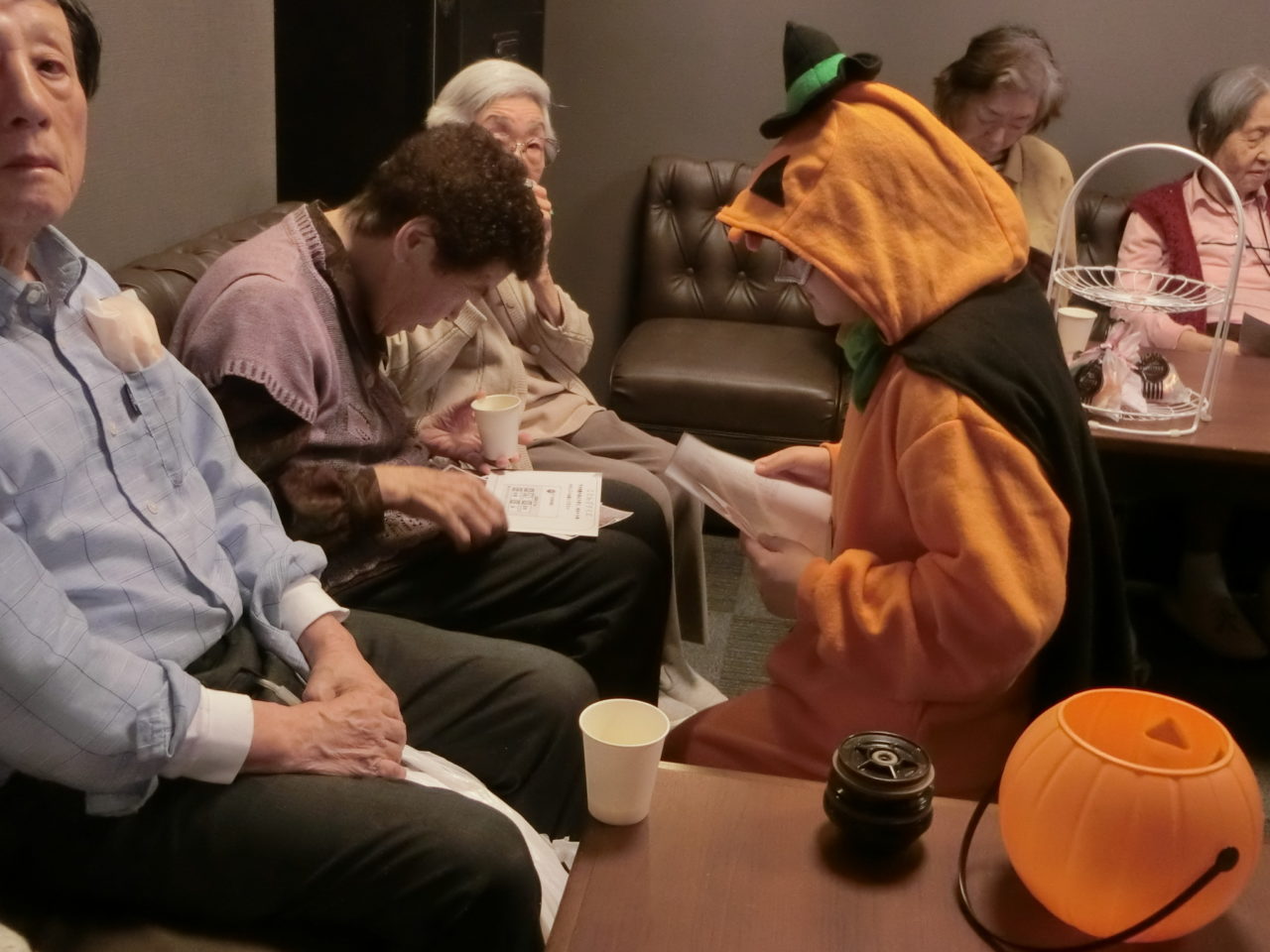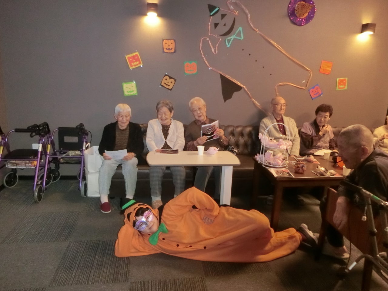ラウンジには、カボチャの怪人が皆さんの楽しそうな様子を見守っています!