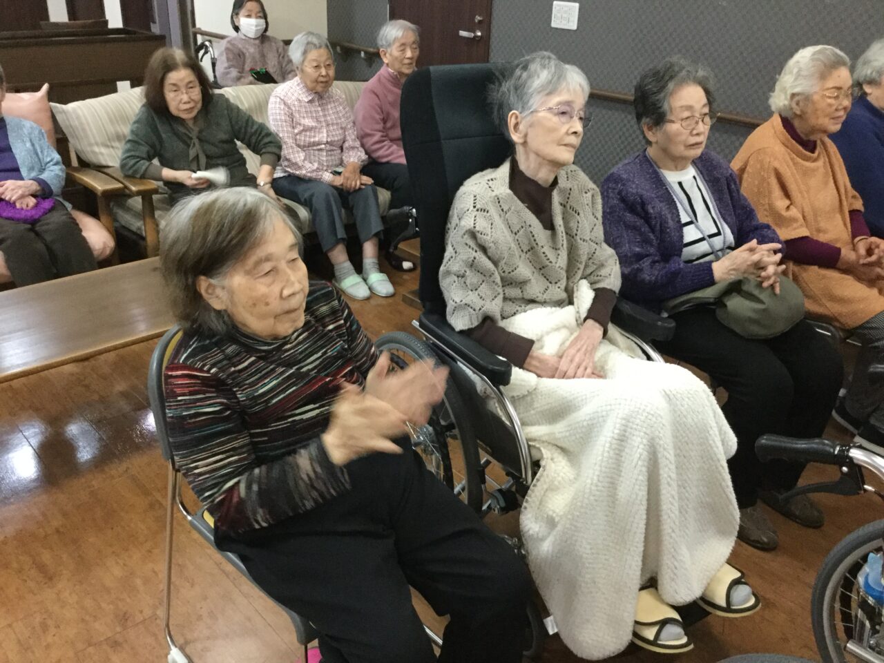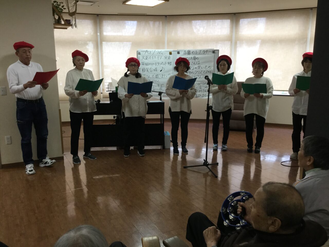 皆さん、歌が大好きで素敵な演奏と歌声に聞き入りそして一緒に歌を楽しみました。そして、ミニコンサートを終えてティータイムに入ろうとしたその時、さらさ横手にもサンタクロースが訪れました❣️?