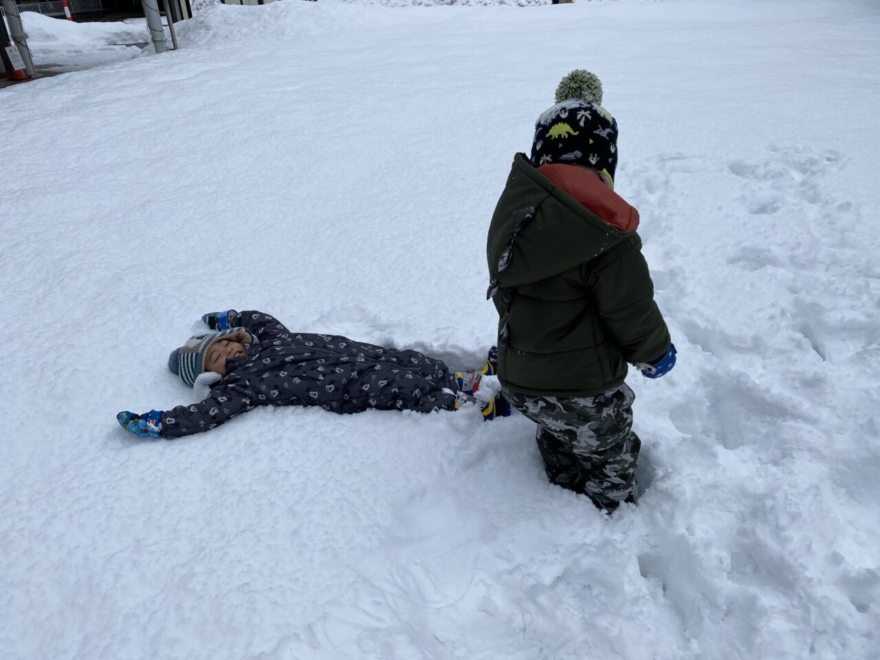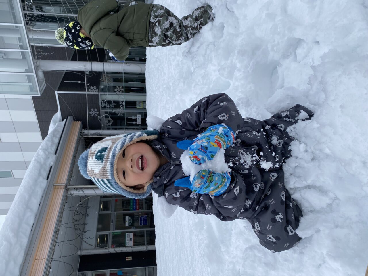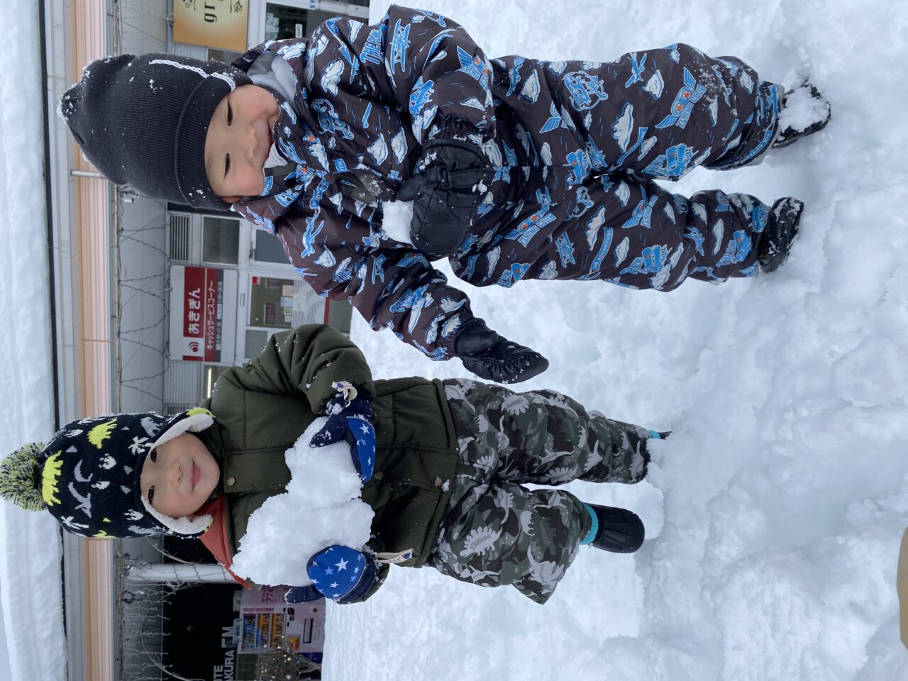今日は晴れ間を見て、雪遊びを楽しんだつき組のお兄さん達✨