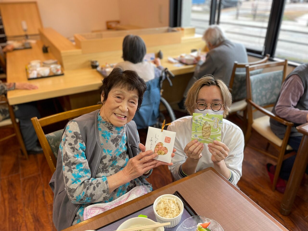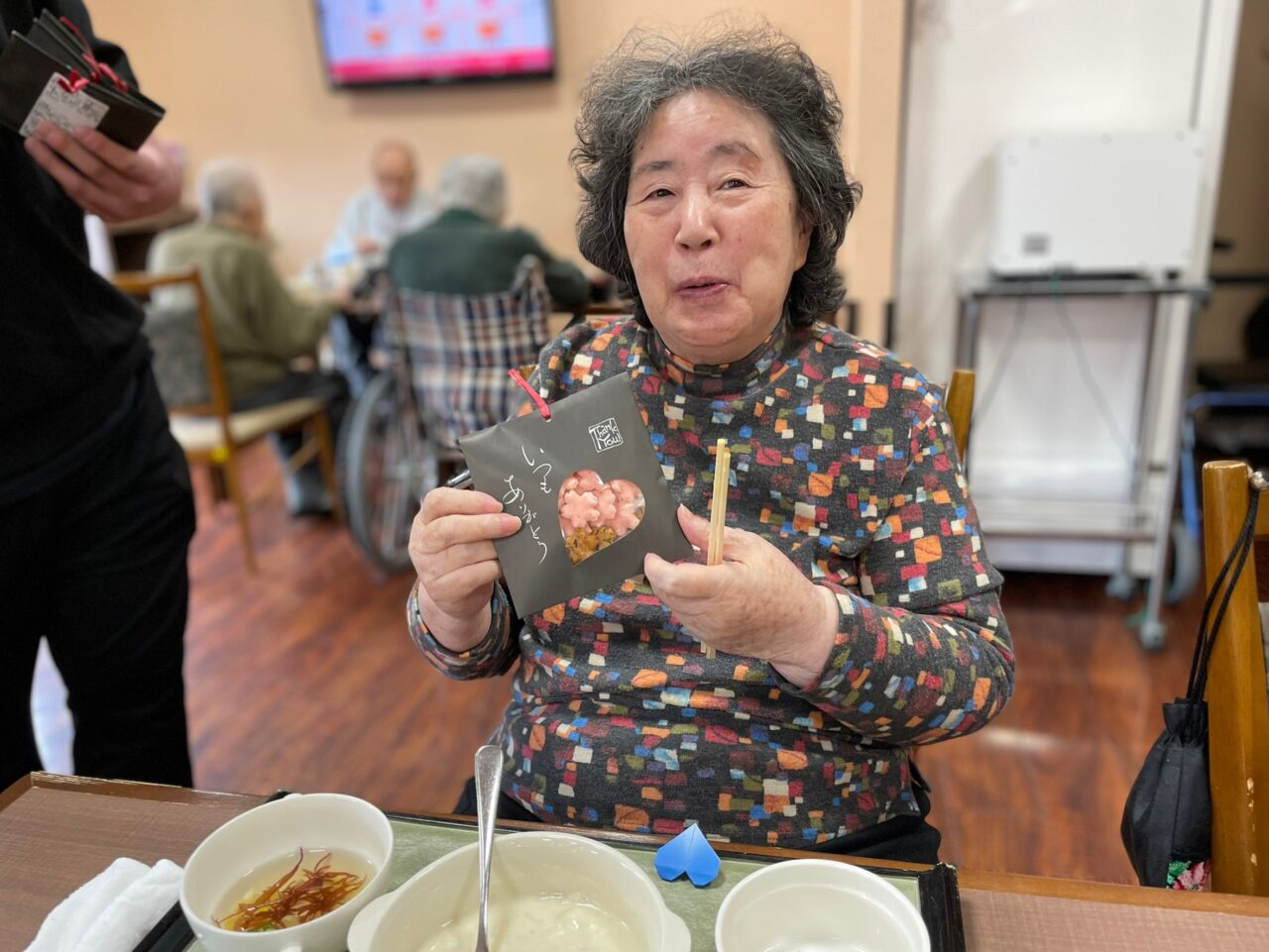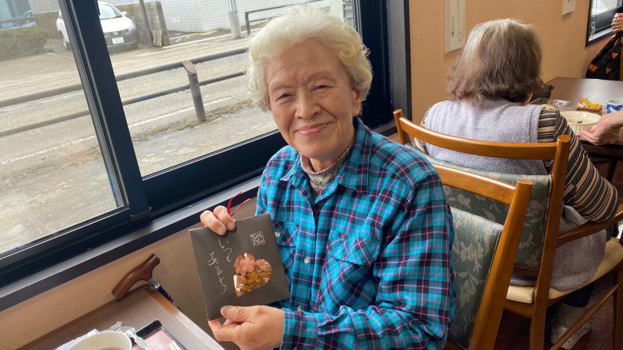 あっという間に昼食の時間となり、今度は利用者さんにも美味しい食事とプレゼントで楽しんで頂きます。