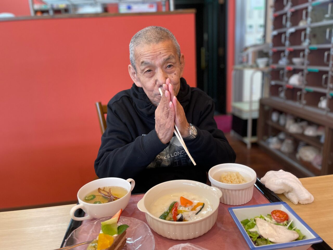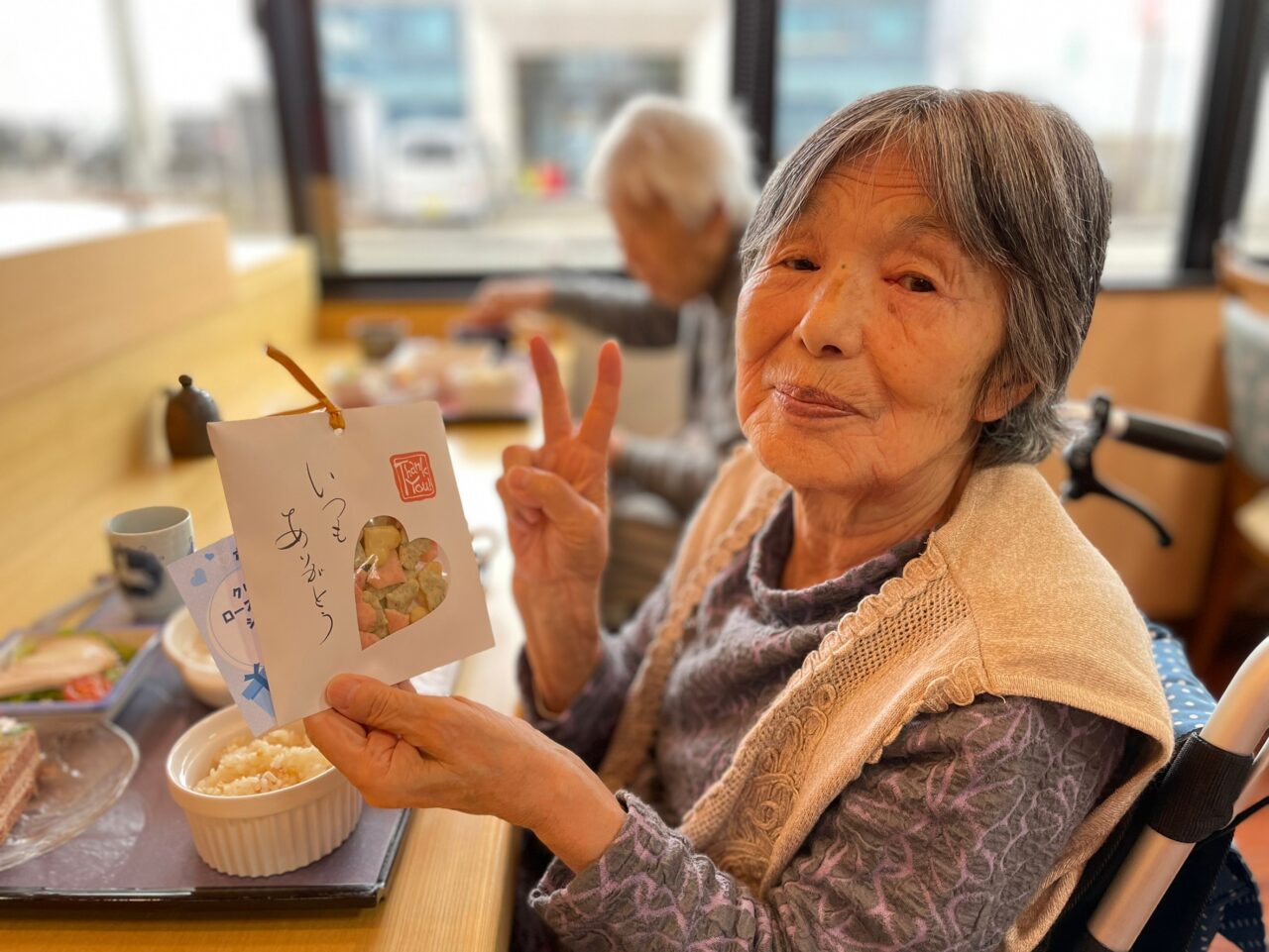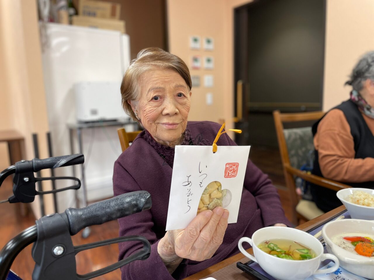 あっという間に昼食の時間となり、今度は利用者さんにも美味しい食事とプレゼントで楽しんで頂きます。