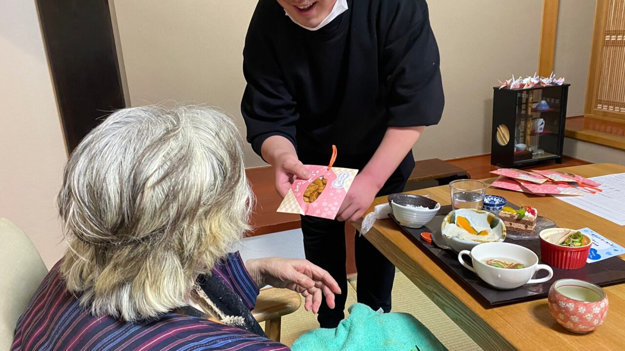 そして、おいしいお食事と一緒に、男性パートナーから女性の利用者さんに日頃の感謝も込めてプレゼント?