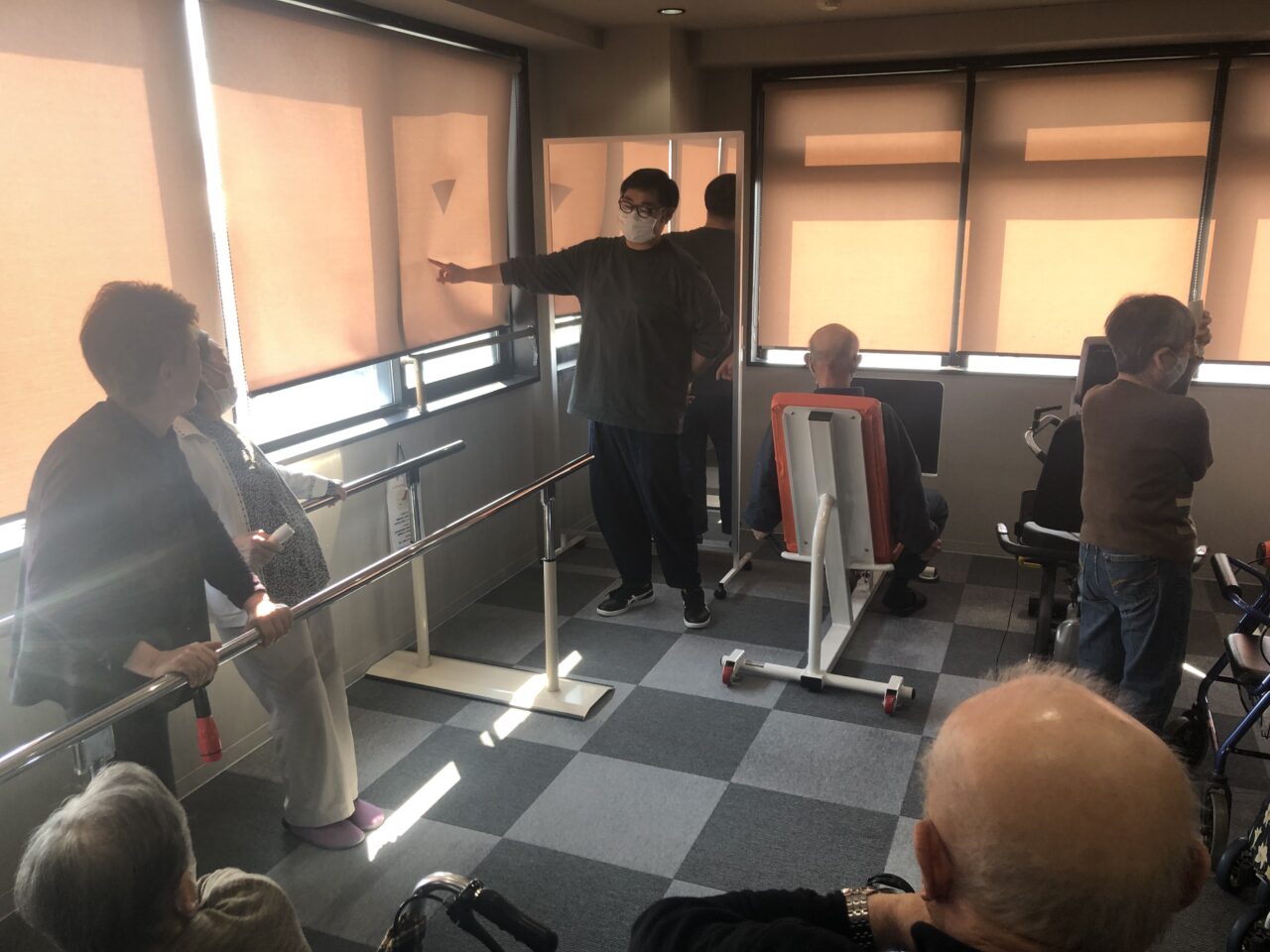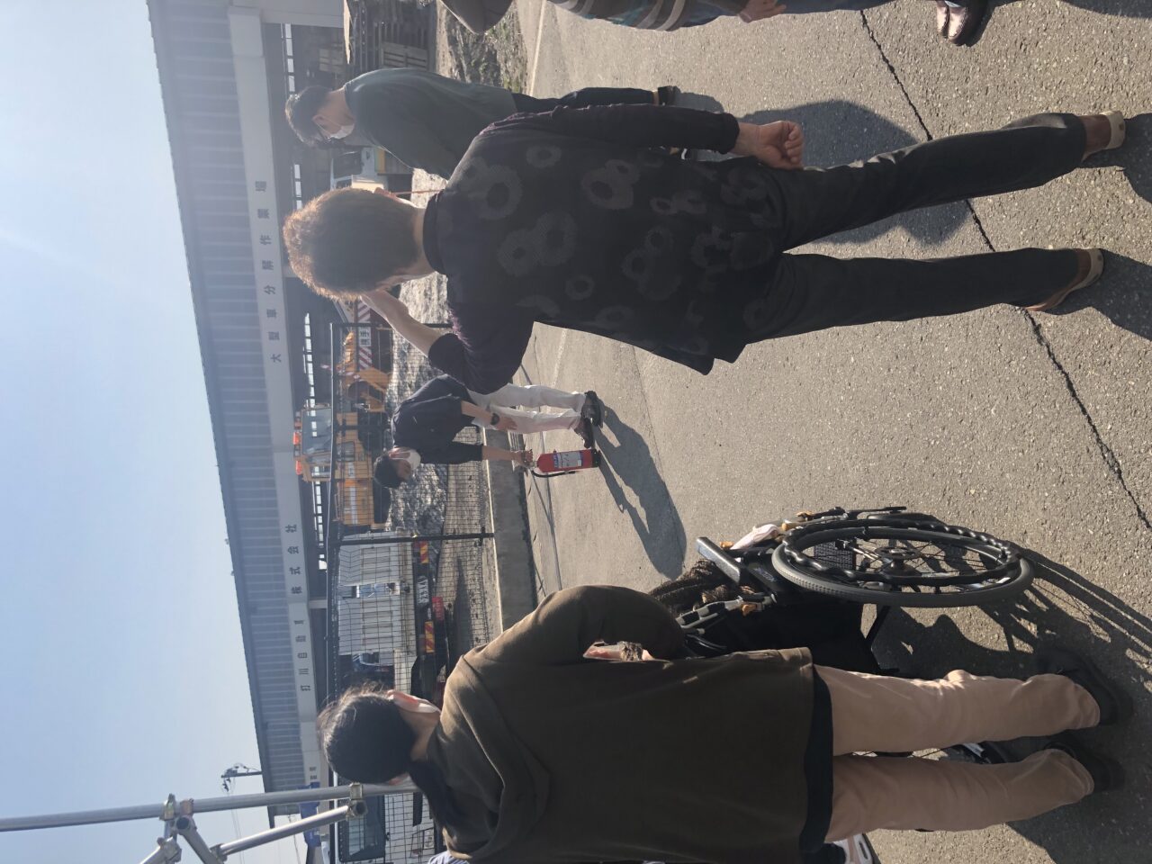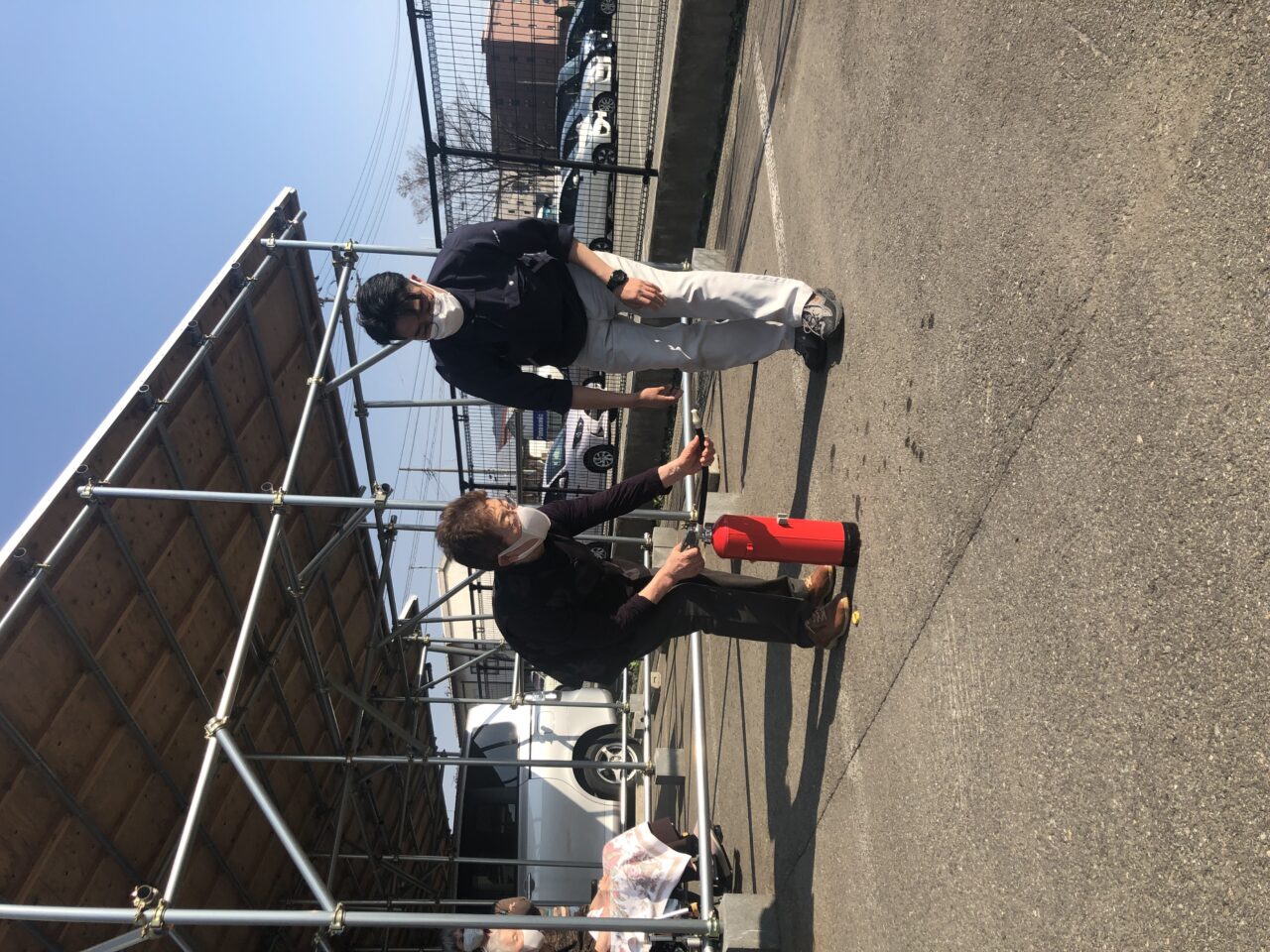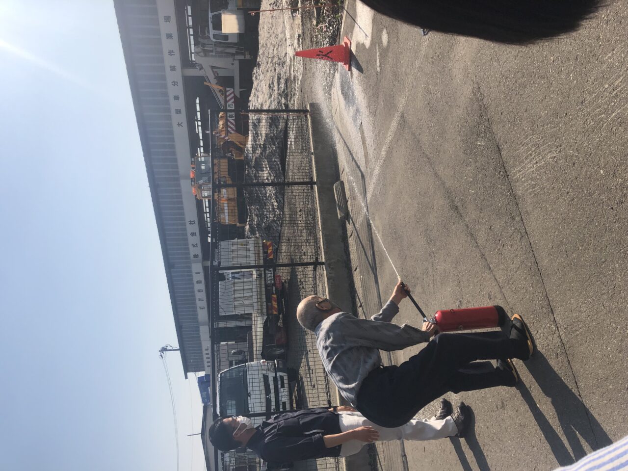 避難経路を確認したあとは、外で実際に消火器(中身は水です)の使い方を教わりました^_^今回はご利用者さんも一緒に行っていただきました?